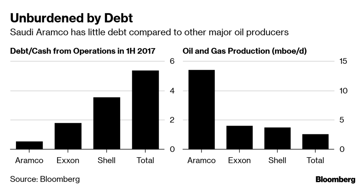 Fitch’s A+ rating for Aramco is one level below the AA- for both Royal Dutch Shell Plc and Total SA. Exxon Mobil Corp. has a top Aaa rating from Moody’s and the second-highest at AA+ from S&P Global Ratings.