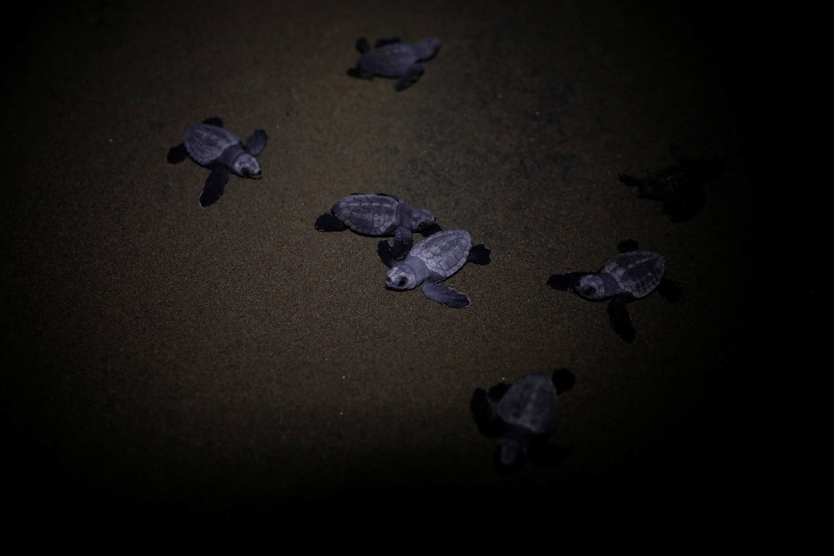 Baby sea turtles crawl to the sea following their release after treatment at the Sea Turtle Rescue Center (DEKAMER) at Iztuzu Beach near Dalyan in Mugla province, Turkey, August 25, 2018. REUTERS/Umit Bektas