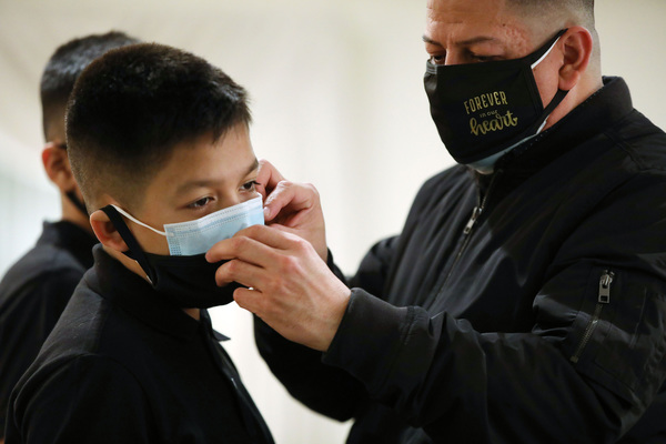 The Beltran family gathered for the visitation on Nov. 13 at Symonds-Madison Funeral Home in Elgin. Everyone donned black masks bearing the inscription "forever in our heart" in gold letters.