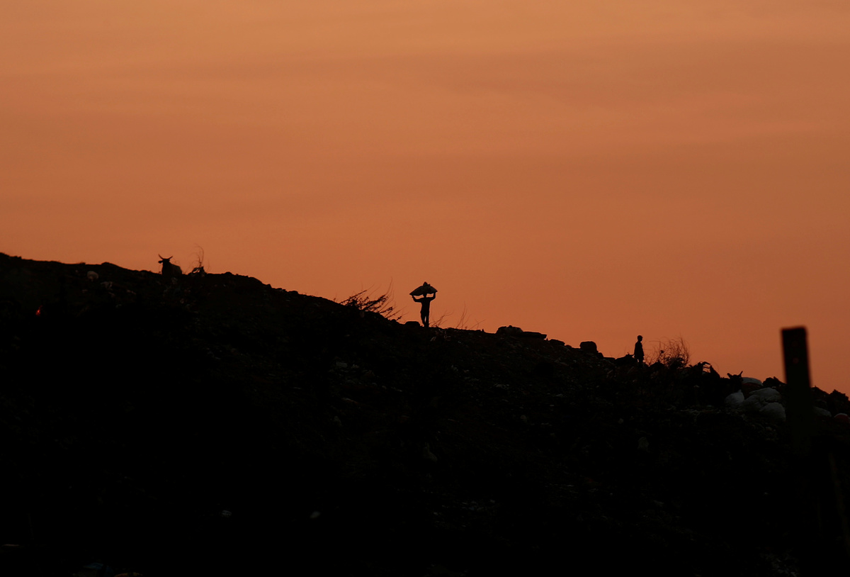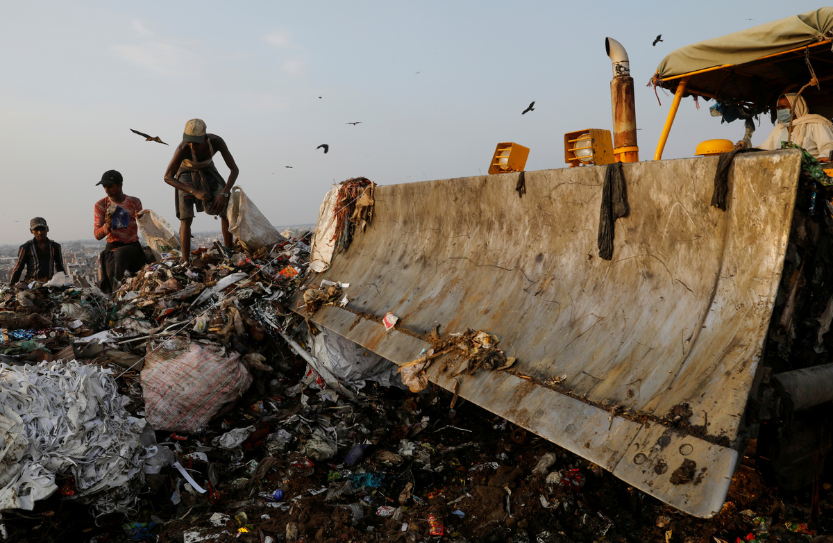 Waste collectors look for recyclable materials at a landfill site, during the coronavirus disease (COVID-19) outbreak, in New Delhi, India, July 22, 2020. REUTERS/Adnan Abidi