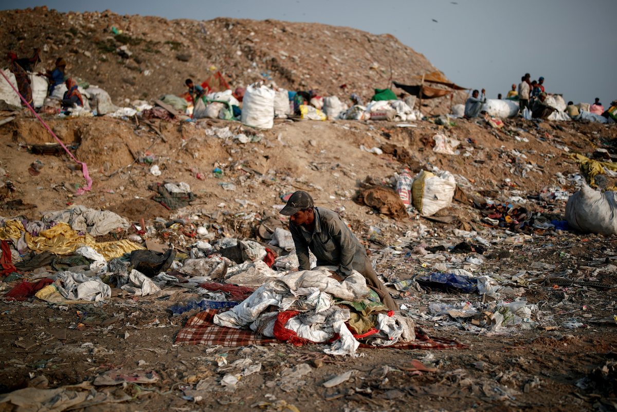 Waste collectors look for recyclable materials at a landfill site, during the coronavirus disease (COVID-19) outbreak, in New Delhi, India, July 9, 2020. REUTERS/Adnan Abidi A disposed pair of protective eye glasses lie amongst other bits of waste at a landfill site, during the coronavirus disease (COVID-19) outbreak, in New Delhi, India, July 22, 2020. REUTERS/Adnan Abidi Waste collectors look for recyclable materials among bags of disposed medical waste at a landfill site, during the coronavirus disease (COVID-19) outbreak, in New Delhi, India, July 9, 2020. REUTERS/Adnan Abidi A waste collector walks along a muddy path through a landfill site, during the coronavirus disease (COVID-19) outbreak, in New Delhi, India, July 22, 2020. REUTERS/Adnan Abidi Discarded syringes lie amongst other bits of disposed medical waste at a landfill site, during the coronavirus disease (COVID-19) outbreak, in New Delhi, India, July 22, 2020. REUTERS/Adnan Abidi A man drives into a landfill site to offload waste from his truck, during the coronavirus disease (COVID-19) outbreak, New Delhi, India, July 18, 2020. REUTERS/Adnan Abidi A COVID-19 testing kit lies on the floor at a landfill site, during the coronavirus disease (COVID-19) outbreak, in New Delhi, India, July 22, 2020. REUTERS/Adnan Abidi A medical staff member wearing personal protective equipment (PPE) pushes a trolley containing medical waste bags to a Bio-Medical Waste storage area, during the coronavirus disease (COVID-19) outbreak, in New Delhi, India, July 17, 2020. REUTERS/Adnan Abidi Mansoor Khan, 44, who works as a waste collector, eats breakfast with his son Latif Khan, 11, outside their house which is next to a landfill site, during the coronavirus disease (COVID-19) outbreak, in New Delhi, India, July 16, 2020. REUTERS/Adnan Abidi Shoes belonging to Mansoor Khan, a waste collector, are left outside of his home, next to a landfill site, during the coronavirus disease (COVID-19) outbreak, in New Delhi, India, July 16, 2020. REUTERS/Adnan Abidi Rubbish bags stand at a landfill site, near a residential area, during the coronavirus disease (COVID-19) outbreak, in New Delhi, India, July 9, 2020. REUTERS/Adnan Abidi Mansoor Khan, 44, who works as a waste collector, puts on his shoes as he gets ready to look for recyclable materials from a landfill site next to his house, during the coronavirus disease (COVID-19) outbreak, in New Delhi, India, July 16, 2020. REUTERS/Adnan Abidi A dog rests on a pile of rubbish at a landfill site, during the coronavirus disease (COVID-19) outbreak, in New Delhi, India, July 15, 2020. REUTERS/Adnan Abidi A discarded N95 protective face mask lies amongst other bits of disposed medical waste at a landfill site, during the coronavirus disease (COVID-19) outbreak, in New Delhi, India, July 22, 2020. REUTERS/Adnan Abidi A young waste collector, waits for a truck to offload rubbish onto a landfill site, during the coronavirus disease (COVID-19) outbreak, in New Delhi, India, July 16, 2020. REUTERS/Adnan Abidi Mansoor Khan, 44, a waste collector, goes through bags of rubbish containing personal protective equipment (PPE) suits, as he looks for recyclable materials at a landfill site, during the coronavirus disease (COVID-19) outbreak, in New Delhi, India, July 9, 2020. "What if we die? What if we get this disease? But fear will not fill our bellies, that is why we have to do this work," said Khan. REUTERS/Adnan Abidi A waste collector walks through a landfill site, during the coronavirus disease (COVID-19) outbreak, in New Delhi, India, July 9, 2020. REUTERS/Adnan Abidi Disposed medical waste lies on the floor of a landfill site, during the coronavirus disease (COVID-19) outbreak, in New Delhi, India, July 4, 2020. REUTERS/Adnan Abidi A waste collector runs behind a truck carrying rubbish at a landfill site, during the coronavirus disease (COVID-19) outbreak, in New Delhi, India, July 15, 2020. REUTERS/Adnan Abidi A waste collector goes through bags of rubbish as he throws them off the truck into the landfill site, during the coronavirus disease (COVID-19) outbreak, in New Delhi, India, July 15, 2020. REUTERS/Adnan Abidi Mansoor Khan, 44, a waste collector, carries a sack of recyclable materials that he found at a landfill site, during the coronavirus disease (COVID-19) outbreak, in New Delhi, India, July 22, 2020. REUTERS/Adnan Abidi A waste collector stands inside a truck at a landfill site, during the coronavirus disease (COVID-19) outbreak, in New Delhi, India, July 9, 2020. REUTERS/Adnan Abidi Latifa Bibi, 38, helps her husband Mansoor Khan, 44, a waste collector, carrying a sack of recyclable materials that they found at a landfill site, after finishing work for the day, during the coronavirus disease (COVID-19) outbreak, in New Delhi, India, July 9, 2020. REUTERS/Adnan Abidi Mansoor Khan, 44, a waste collector, washes his trousers with water, after returning from work at a landfill site, during the coronavirus disease (COVID-19) outbreak, in New Delhi, India, July 22, 2020. REUTERS/Adnan Abidi Mansoor Khan, 44, a waste collector, looks for recyclable materials at a landfill site, during the coronavirus disease (COVID-19) outbreak, in New Delhi, India, July 9, 2020. REUTERS/Adnan Abidi Mansoor Khan, 44, a waste collector, uses a piece of charcoal to clean his teeth, outside his home which is next to a landfill site, during the coronavirus disease (COVID-19) outbreak, in New Delhi, India, July 16, 2020. REUTERS/Adnan Abidi A waste collector, carries a sack of recyclable materials, after he finishes work for the day at a landfill site, during the coronavirus disease (COVID-19) outbreak, in New Delhi, India, July 15, 2020. REUTERS/Adnan AbidiLatifa Bibi, 38, who is married to Mansoor Khan, a waste collector, shields herself from the sun, under a blanket with other waste collectors, at a landfill site during the coronavirus disease (COVID-19) outbreak, in New Delhi, India, July 9, 2020. REUTERS/Adnan Abidi Latif Kha