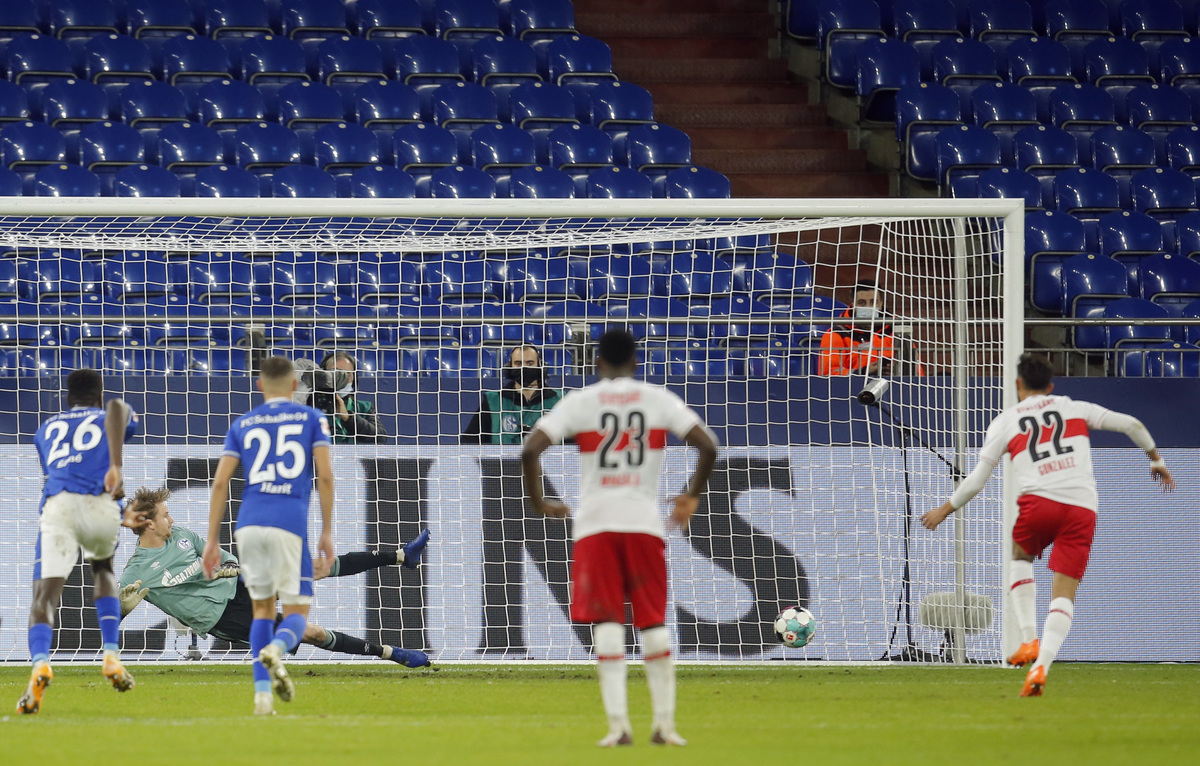 Soccer Football - Bundesliga - Schalke 04 v VfB Stuttgart - Veltins-Arena, Gelsenkirchen, Germany - October 30, 2020 VfB Stuttgart's Nicolas Gonzalez scores their first goal from the penalty spot REUTERS/Leon Kuegeler