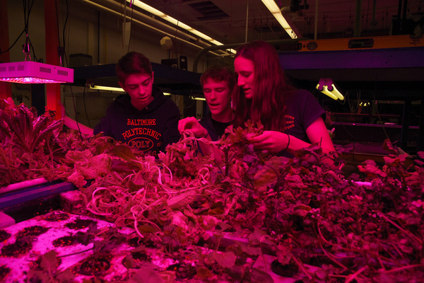 All of this bounty comes from small pots of soil suspended on styrofoam in a tank of water that is rich with fish feces. For the students at Baltimore Polytechnic Institute, the classroom's aquaponic laboratory has been a chance to combine the study of environmental science with a smattering of chemistry, biology and engineering.
