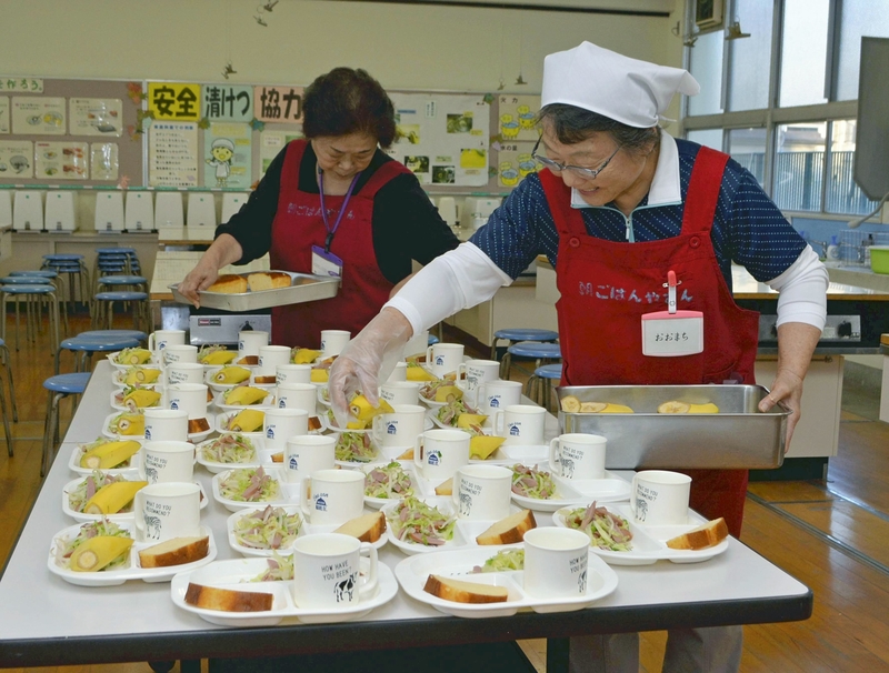 At one elementary school in Osaka city, local residents prepare breakfast for students three days a week.