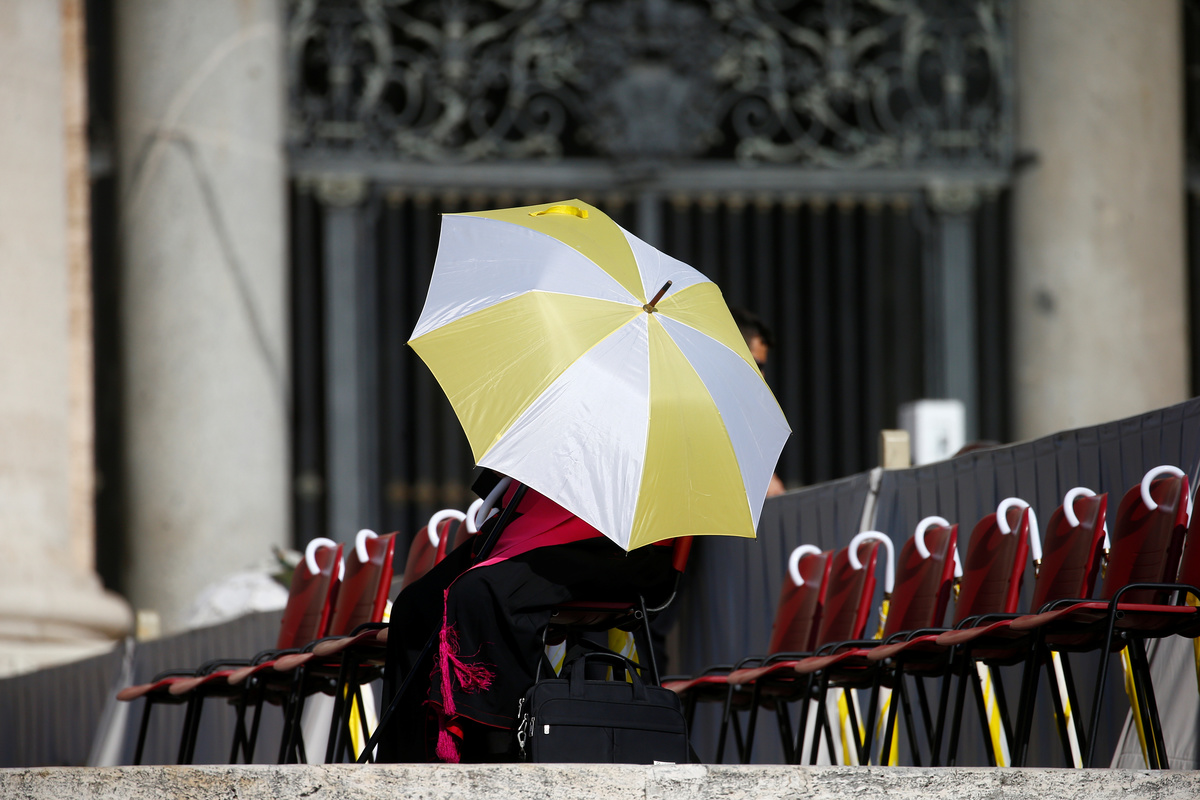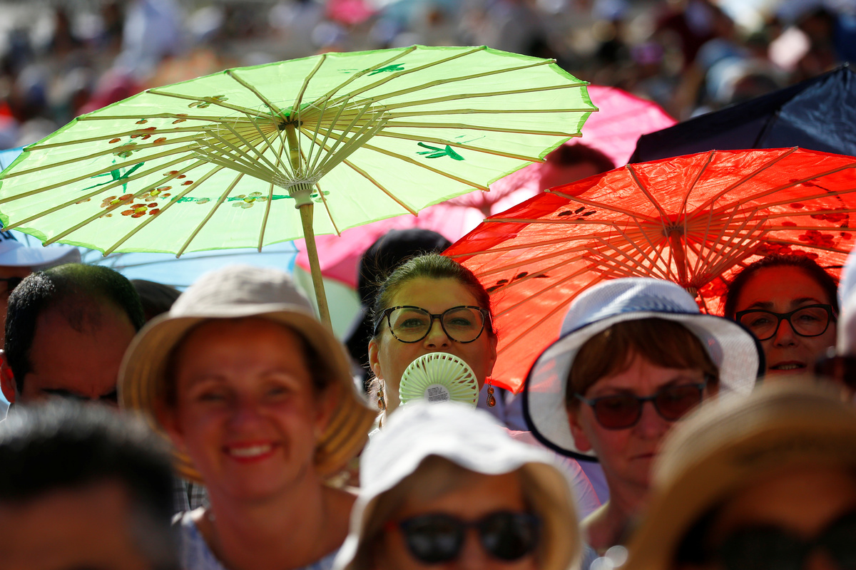 At the Vatican, elderly and infirm pilgrims watched Pope Francis' weekly audience on large screens in an air-conditioned auditorium to avoid the sweltering temperatures gripping Rome.