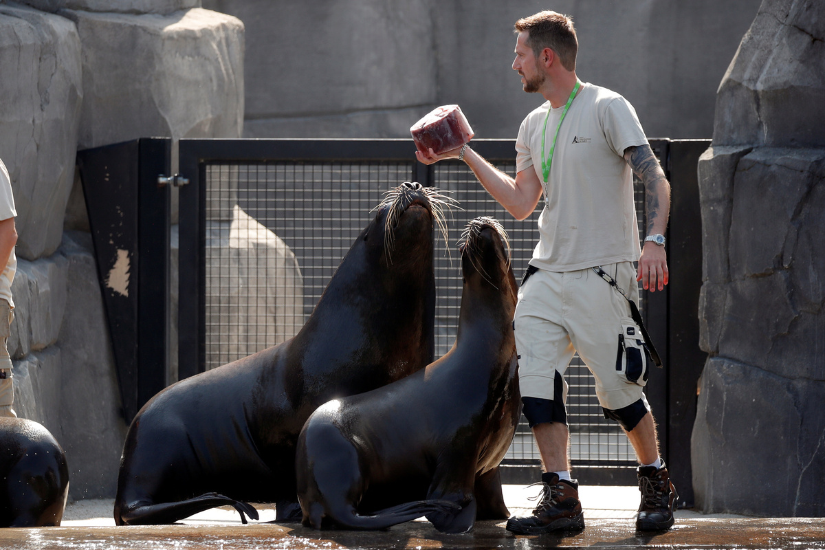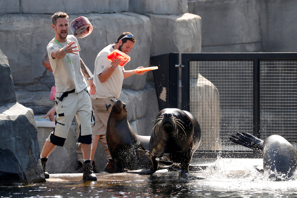 A young orangutan plays with a yellow ball at Hellabrunn Zoo in Munich, Germany, June 26, 2019. REUTERS/Andreas GebertA chimpanzee holds ice with nuts and fruits at Hellabrunn Zoo in Munich, Germany, June 26, 2019. REUTERS/Andreas GebertA young orangutan plays with a yellow ball at Hellabrunn Zoo in Munich, Germany, June 26, 2019. REUTERS/Andreas GebertA hippopotamus rests in its enclosure in Schoenbrunn zoo, as a heatwave hits the country, in Vienna, Austria June 26, 2019. REUTERS/Leonhard FoegerA hippopotamus rests in its enclosure in Schoenbrunn zoo, as a heatwave hits the country, in Vienna, Austria June 26, 2019. REUTERS/Leonhard FoegerCaretakers feed sea lions Kito,14, and Yassie, 4, with gelatine cubes at the Paris Zoological Park in the Bois de Vincennes in the east of Paris, as a heatwave hits much of the country, France, June 26, 2019. REUTERS/Charles PlatiauA caretaker feeds sea lion Yassie, 4, with gelatine cubes at the Paris Zoological Park in the Bois de Vincennes in the east of Paris, as a heatwave hits much of the country, France, June 26, 2019. REUTERS/Charles PlatiauCaretakers throw ice to sea lions at the Paris Zoological Park in the Bois de Vincennes in the east of Paris, as a heatwave hits much of the country, France, June 26, 2019. REUTERS/Charles PlatiauPeople enjoy the weather at a fountain in Berlin, Germany, June 26, 2019. REUTERS/Hannibal HanschkeA dog cools off in the water of a fountain in Berlin, Germany, June 26, 2019. REUTERS/Hannibal HanschkeA surfer rides a wave in the Eisbach river that runs through the English Garden in Munich, Germany, June 26, 2019. REUTERS/Andreas GebertA man cools off in the water of a fountain in Berlin, Germany, June 26, 2019. REUTERS/Hannibal HanschkePeople swim in the Eisbach river that runs through the English Garden in Munich, Germany, June 26, 2019. REUTERS/Andreas GebertTourists fill bottles with water at a fountain, as a heatwave hits Spain, in Ronda, southern Spain June 26, 2019. REUTERS/Jon NazcaPeople brave heat to attend the general audience in St. Peter's Square, at the Vatican, June 26, 2019. REUTERS/Yara NardiA tourist uses an umbrella to protect himself from the sun, as a heatwave hits Spain, in Ronda, southern Spain June 26, 2019. REUTERS/Jon NazcaFossas eat frozen rabbit blood and rabbit head at the Paris Zoological Park in the Bois de Vincennes in the east of Paris, as a heatwave hits much of the country, France, June 26, 2019. REUTERS/Charles PlatiauHumboldt penguins stand in enclaves behind sprinklers at the Paris Zoological Park in the Bois de Vincennes in the east of Paris, as a heatwave hits much of the country, France, June 26, 2019. REUTERS/Charles PlatiauPeople cool off on a rocky beach as a heatwave hits Europe, in Sliema, Malta, June 26, 2019. Picture taken with long exposure. REUTERS/Darrin Zammit LupiA woman tries to cool off by the sea as a heatwave hits Europe, in Sliema, Malta, June 26, 2019. REUTERS/Darrin Zammit LupiCaretakers prepares to throw ice to sea lions at the Paris Zoological Park in the Bois de Vincennes in the east of Paris, as a heatwave hits much of the country, France, June 26, 2019. REUTERS/Charles PlatiauA member of the clergy holds an umbrella ahead of the general audience in St. Peter's Square, at the Vatican, June 26, 2019. REUTERS/Yara Nardi