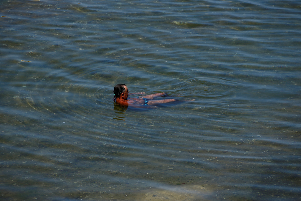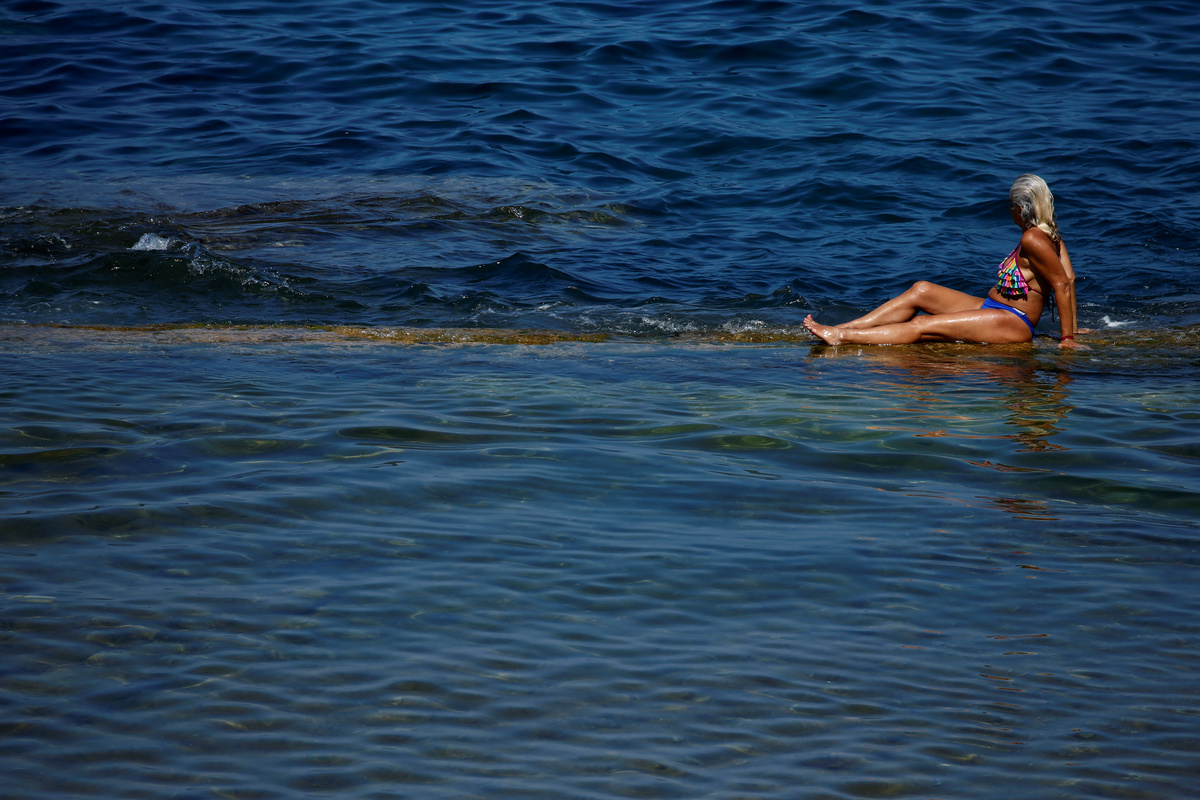 A man sits in a rock pool by the sea as a heatwave hits Europe, in Sliema, Malta, June 26, 2019. REUTERS/Darrin Zammit Lupi