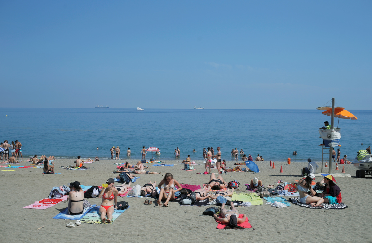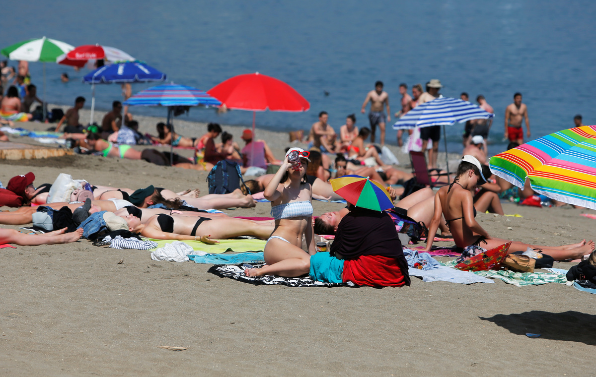 People enjoy themselves at the beach, as a heatwave hits Spain, in Malaga, southern Spain June 26, 2019. REUTERS/Jon Nazca
