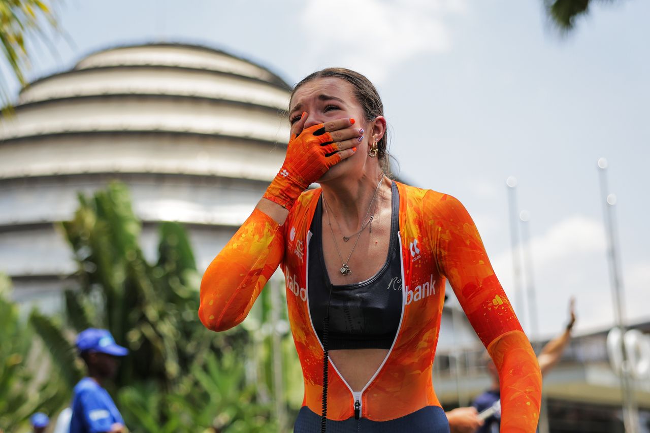 Arens even managed to go on an altitude camp ahead of the Worlds, along with her brother, father and the other junior women's riders. Winner of the junior time trial at the Dutch national championships, the TT in Kigali was a specific goal for the 18-year-old, and there was an outpouring of emotion and tears when she found out she had won.