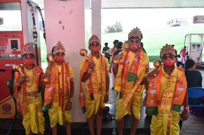 During Mr Modi’s roadshow, while several children were seen watching it, students of a private school in Vadavalli participated in the election campaign. They were seen dressed as Hindu deities, donning saffron-coloured cloth strips bearing party symbols, at various locations throughout the roadshow, performing on stages arranged by workers of the BJP.
