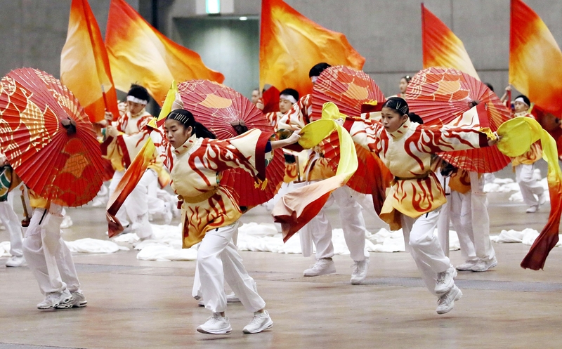 About 140 people ranging from elementary school students to high school students were dressed in costumes representing the torch and sunlight. They performed lively dances inspired by Japanese myths and festivals.
