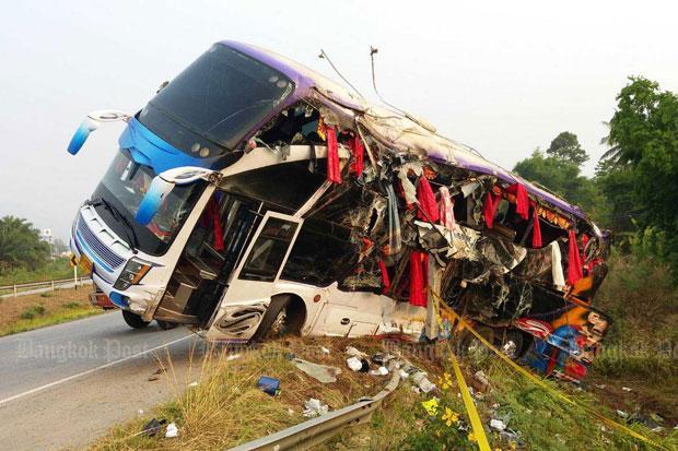 Nadi district chief Nopadol Ngamluea said the bus was carrying 20 junior secondary school students and 19 teachers from Bankoknamkiang School in Muang district of Nong Bua Lam Phu province. They were heading for the Kung Krabaen Bay Royal Development Study Centre in Chanthaburi province.