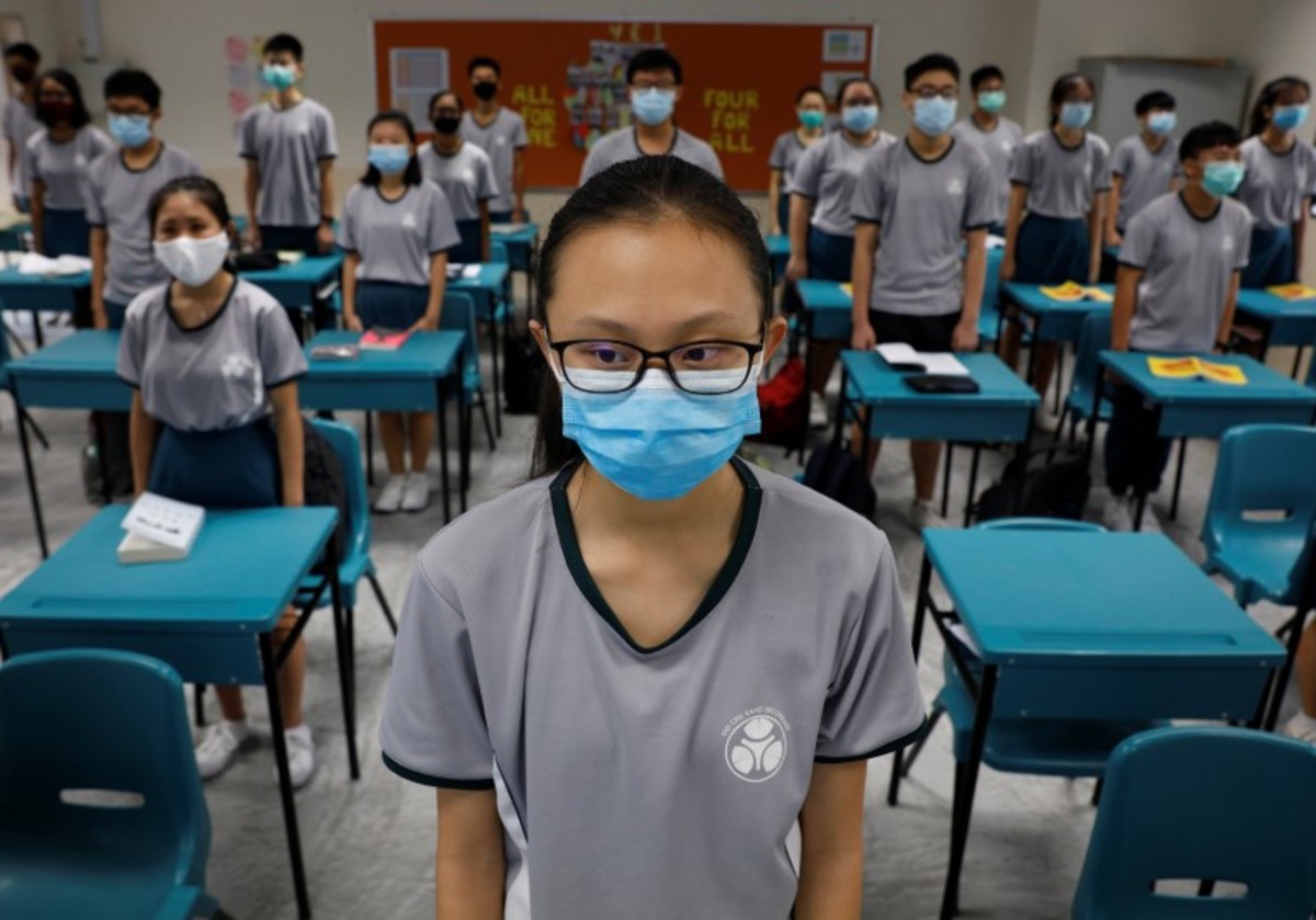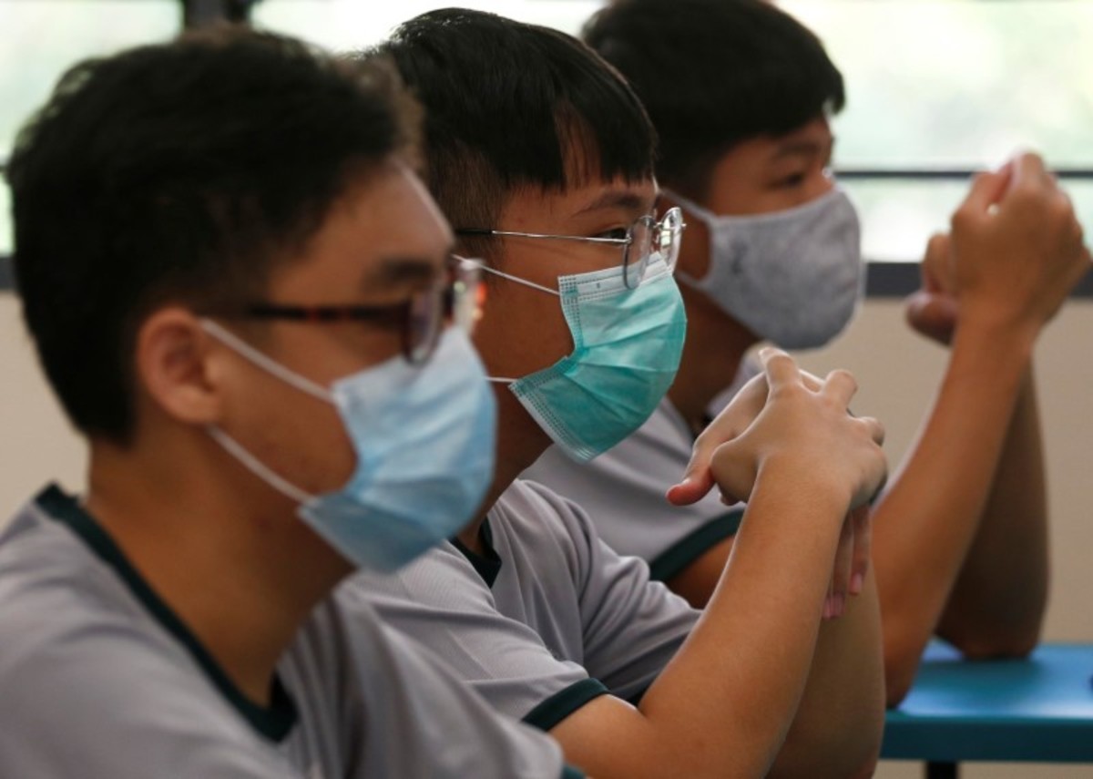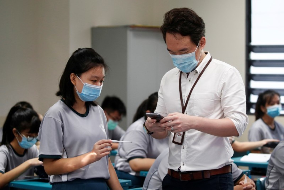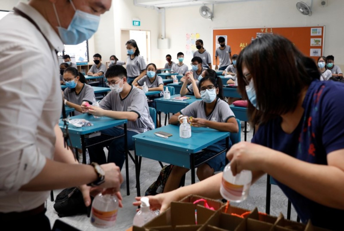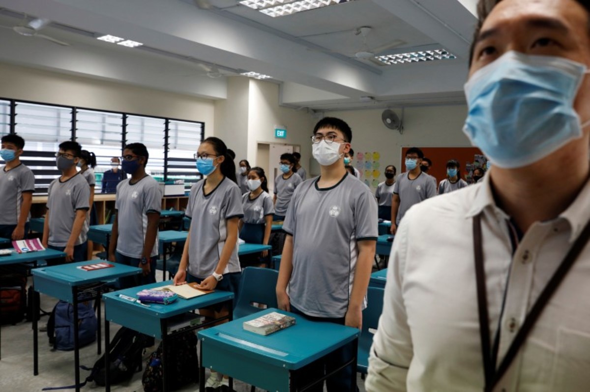 Students wearing face masks stand for the national anthem in class at Yio Chu Kang Secondary School, as schools reopen amid the coronavirus disease (COVID-19) outbreak in Singapore June 2, 2020. REUTERS/Edgar SuStudents have their temperature checked in class at Yio Chu Kang Secondary School, as schools reopen amid the coronavirus disease (COVID-19) outbreak in Singapore June 2, 2020. REUTERS/Edgar SuStudents wearing face masks sing the national anthem in class at Yio Chu Kang Secondary School, as schools reopen amid the coronavirus disease (COVID-19) outbreak in Singapore June 2, 2020. REUTERS/Edgar SuStudents wearing protective face masks attend a class at Yio Chu Kang Secondary School, as schools reopen amid the coronavirus disease (COVID-19) outbreak in Singapore June 2, 2020. REUTERS/Edgar SuChildren wearing protective face masks and shields attend preschool classes at St James' Church Kindergarten as schools reopen amid the coronavirus disease (COVID-19) outbreak in Singapore June 2, 2020. REUTERS/Edgar SuOffice workers wearing face masks take their lunch break at the central business district amid the coronavirus disease (COVID-19) outbreak in Singapore June 2, 2020. REUTERS/Edgar SuHand sanitisers are distributed to students in class at Yio Chu Kang Secondary School, as schools reopen amid the coronavirus disease (COVID-19) outbreak in Singapore June 2, 2020. REUTERS/Edgar SuChildren wearing protective face masks sanitise their hands as they attend preschool classes at St James' Church Kindergarten as schools reopen amid the coronavirus disease (COVID-19) outbreak in Singapore June 2, 2020. REUTERS/Edgar SuGroomers groom dogs at June's Pethouse as pet services resume amid the coronavirus disease (COVID-19) outbreak in Singapore June 2, 2020. REUTERS/Edgar SuGroomers groom dogs at June's Pethouse as pet services resume amid the coronavirus disease (COVID-19) outbreak in Singapore June 2, 2020. REUTERS/Edgar SuStudents have their temperature checked before a class at Yio Chu Kang Secondary School, as schools reopen amid the coronavirus disease (COVID-19) outbreak in Singapore June 2, 2020. REUTERS/Edgar SuStudents wearing protective face masks listen in class at Yio Chu Kang Secondary School, as schools reopen amid the coronavirus disease (COVID-19) outbreak in Singapore June 2, 2020. REUTERS/Edgar SuChildren wearing protective face masks sanitise their hands as they attend preschool classes at St James' Church Kindergarten as schools reopen amid the coronavirus disease (COVID-19) outbreak in Singapore June 2, 2020. REUTERS/Edgar SuOffice workers wearing face masks take their lunch break at the central business district amid the coronavirus disease (COVID-19) outbreak in Singapore June 2, 2020. REUTERS/Edgar SuOffice workers wearing face masks take their lunch break at the central business district amid the coronavirus disease (COVID-19) outbreak in Singapore June 2, 2020. REUTERS/Edgar Su