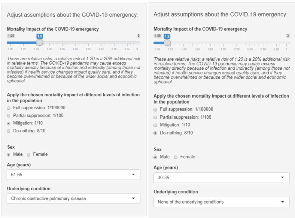 The calculator has been built as part of a wider study, which warns lifting the coronavirus lockdown too quickly could lead to anywhere between 37,000 and 73,000 excess deaths within a year.
