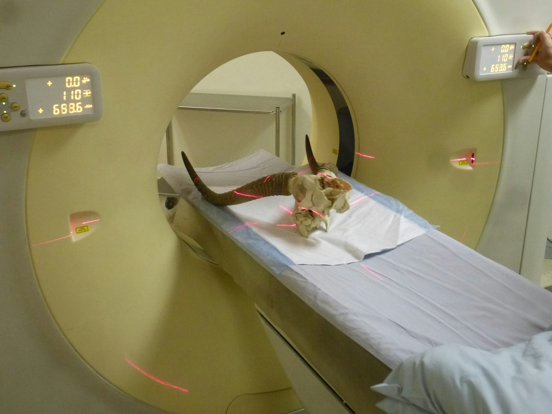 But in practice, it was no easy task. To access the lateral canal, my collaborators and I had to put over 300 mammalian skulls from around the world into X-ray medical scanners. The inner ear then had to be extracted digitally from the X-ray images. In parallel, we had to photographically document the actual head posture of the same species using a camera equipped with a bubble level to ensured that all pictures would be taken horizontally. To do this, I travelled to zoos on three different continents to create the largest photographic dataset of head posture in mammals: it contains more than 10 000 pictures of animals, in profile, ranging from giraffes to African and Indian rhinos, horses, zebras, pigs, a huge variety of antelopes and hippos.