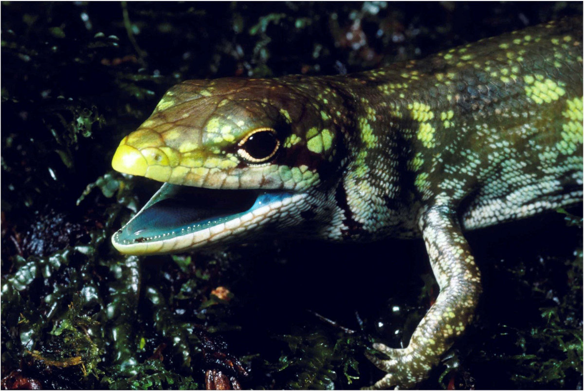The green-blooded lizards, up to a foot (30 cm) long, live in lowland tropical forests and highlands on New Guinea, an island shared by Papua New Guinea and Indonesia.