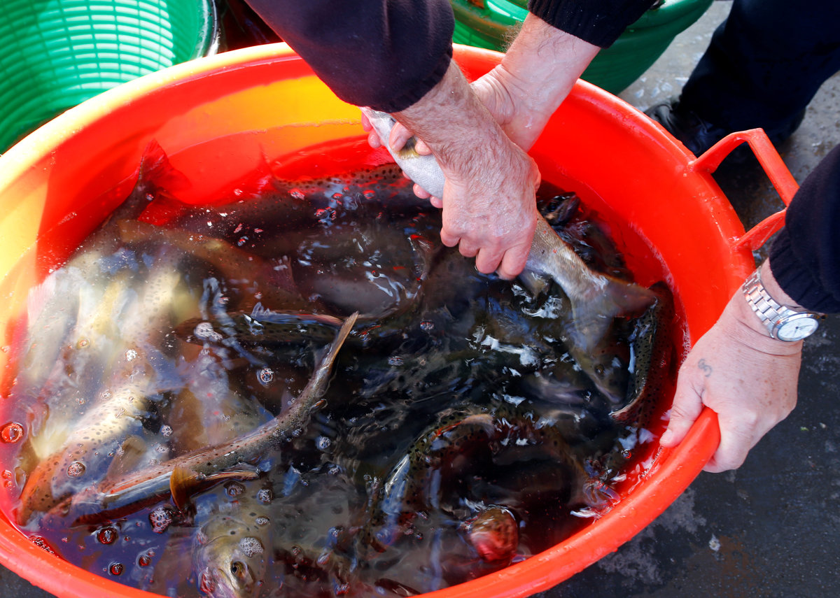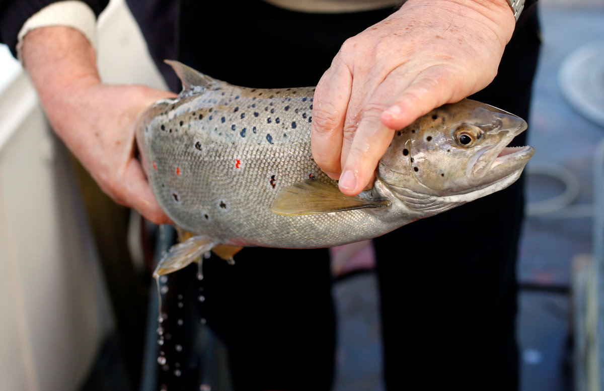 A hydrobiologist from the Hydrobiological Institute of Ohrid extracts the semen from a trout for a method of artificial spawning, in Ohrid, Macedonia February 9, 2018. Picture taken February 9, 2018. REUTERS/Ognen TeofilovskiA hydrobiologist from the Hydrobiological Institute of Ohrid washes the roe from a trout during a method of artificial spawning, in Ohrid, Macedonia February 9, 2018. Picture taken February 9, 2018. REUTERS/Ognen TeofilovskiHydrobiologists from the Hydrobiological Institute of Ohrid milk the roe from a trout for a method of artificial spawning, in Ohrid, Macedonia February 9, 2018. Picture taken February 9, 2018. REUTERS/Ognen TeofilovskiA hydrobiologist from the Hydrobiological Institute of Ohrid visually checks a trout during a method of artificial spawning, in Ohrid, Macedonia February 9, 2018. Picture taken February 9, 2018. REUTERS/Ognen Teofilovski