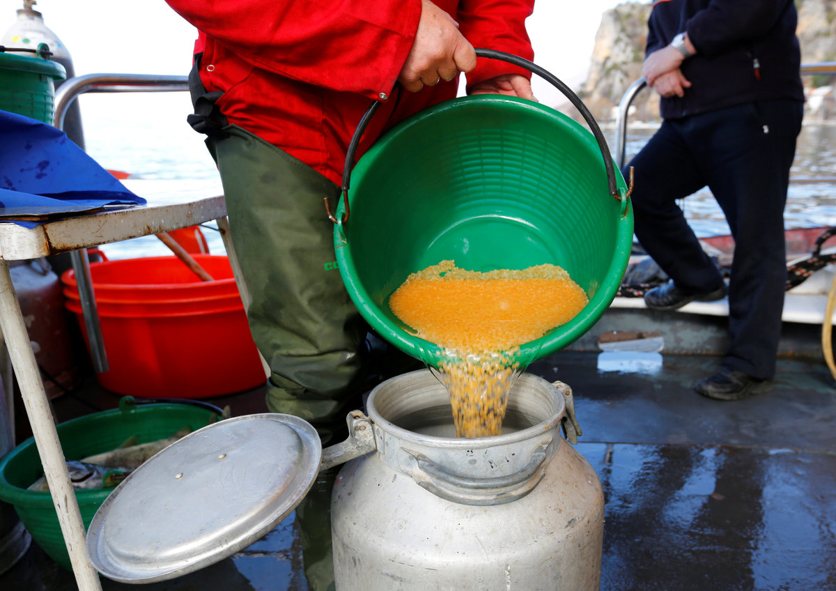 Scientists from the Hydrobiological Institute of Ohrid then milk the roe and sperm from the fish and release fertilized eggs into the lake, said biologist Zoran Spirkoski.