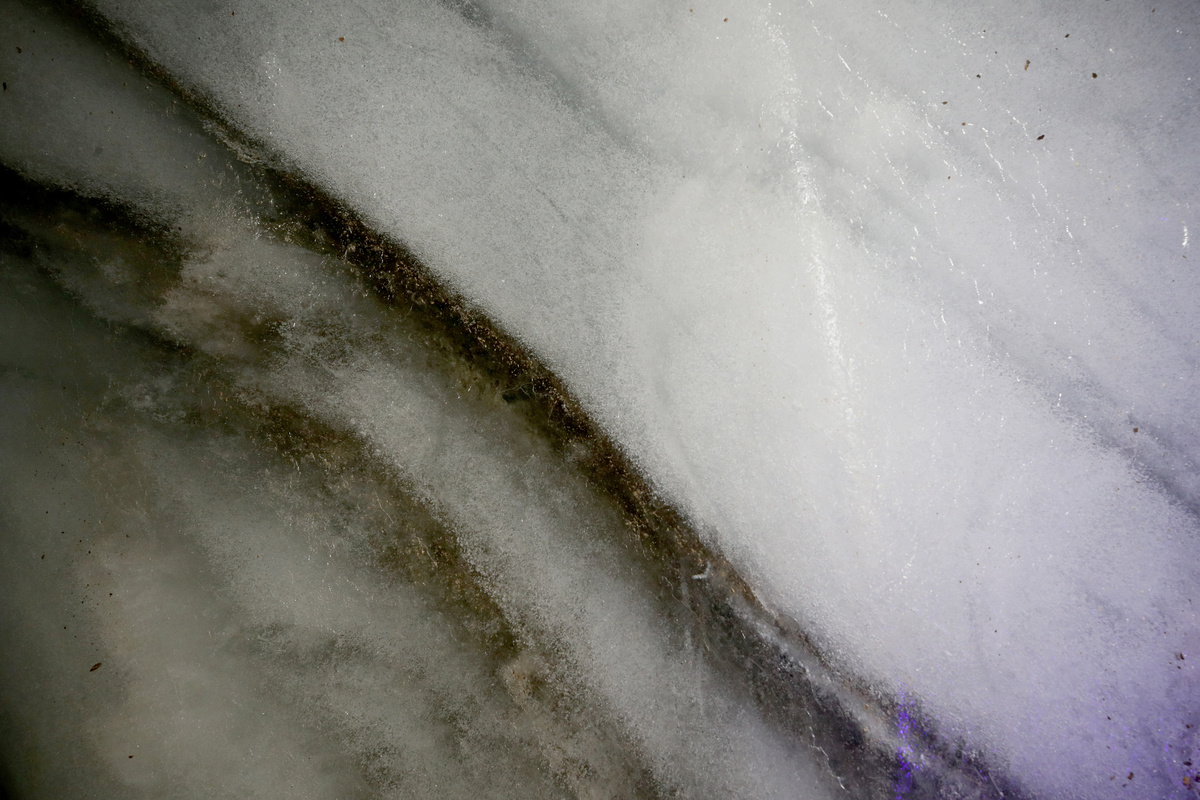 The lower layers are more densely packed than those at the top, meaning that one meter of ice could include thousands of years of data.
