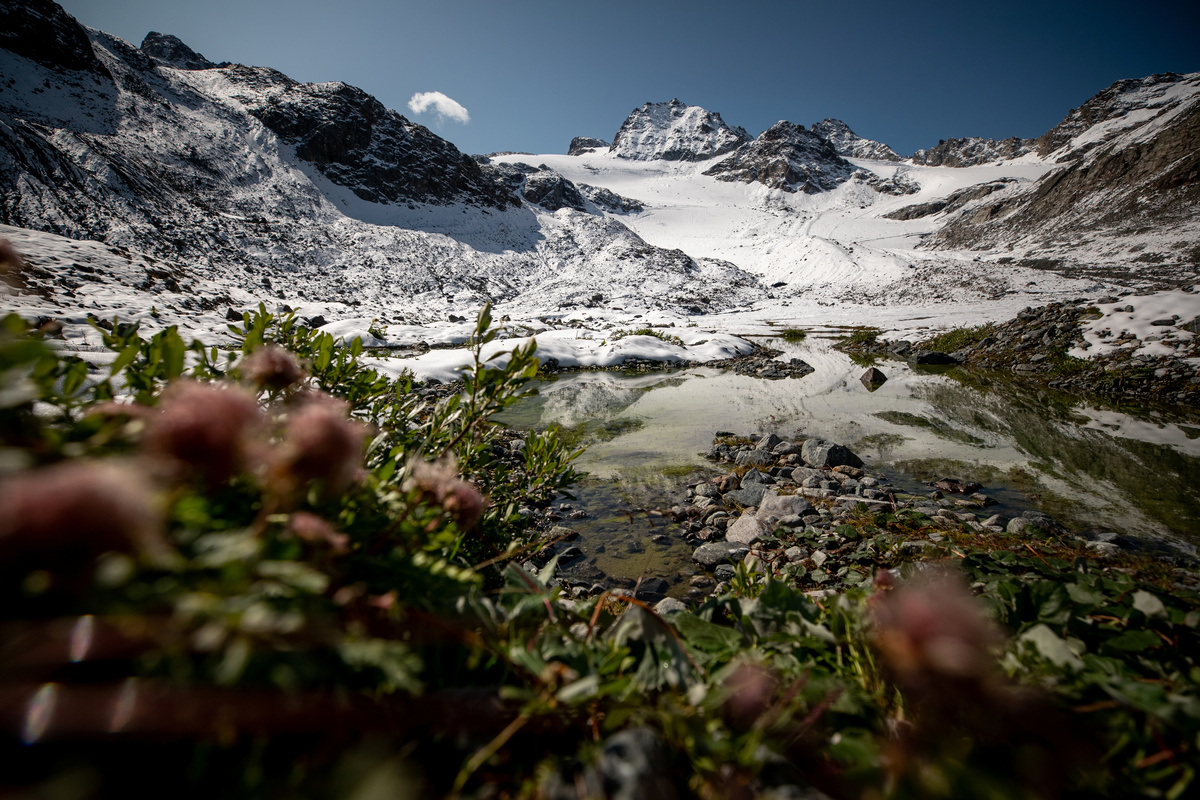 FILE PHOTO: Plants grow near a lake in front of Jamtalferner glacier near Galtuer, Austria, September 11, 2019. REUTERS/Lisi Niesner