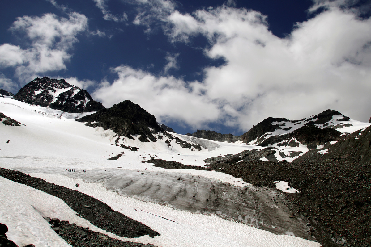 FILE PHOTO: A group of scientists from the Austrian Institute for Interdisciplinary Mountain Research cross the Jamtalferner glacier near Galtuer, Austria, April 24, 2019. REUTERS/Lisi Niesner