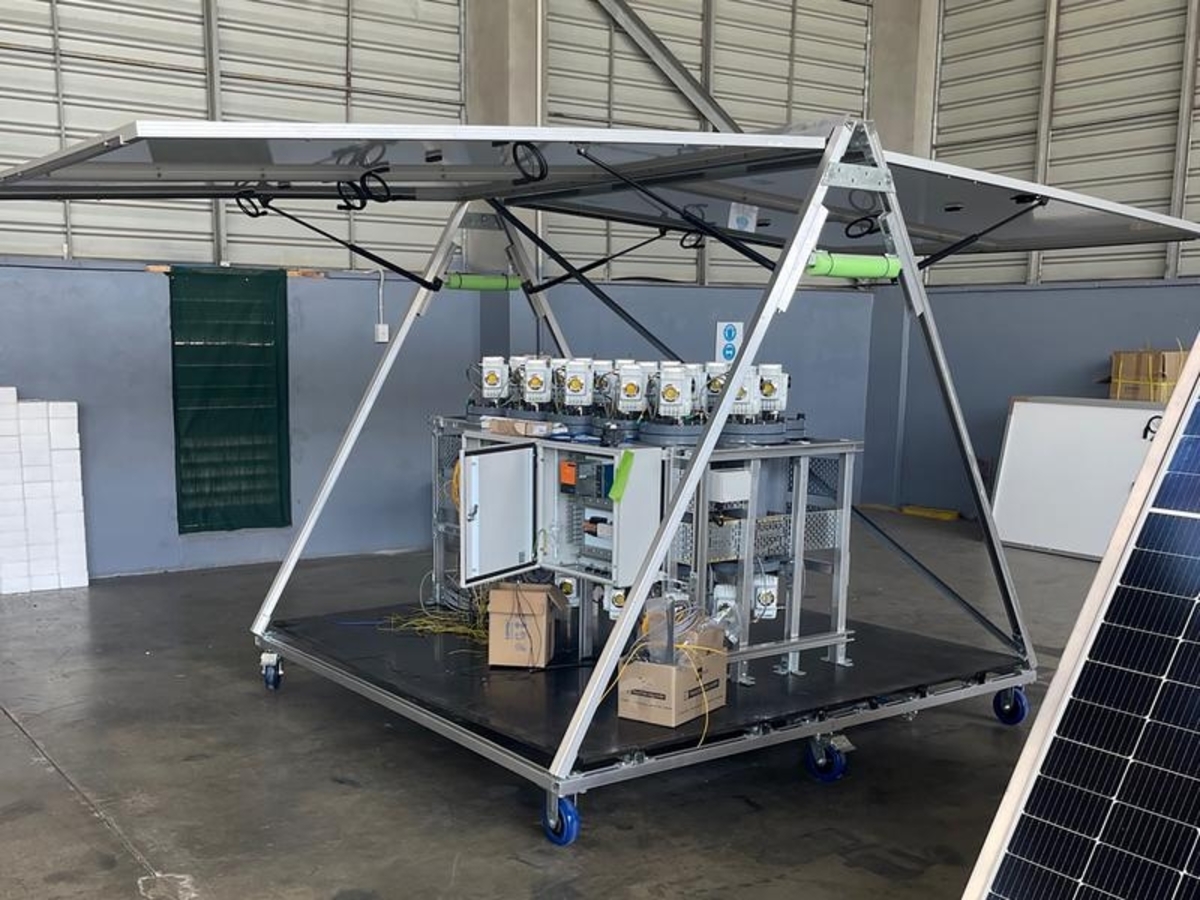 "They look like a two-person tent with solar panels sitting on top, and each module is designed to capture two tonnes a year from CO2 from the atmosphere," he says.