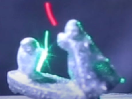 Currently, it is possible to create the effect of a phaser blast or a disrupter charge, which were used to engineer a battle sequence between equally small versions of the Starship Enterprise and a Klingon Battle Cruiser. Yoda and Darth Vader were also shown in battle, using appropriately-coloured lasers for their swords.
