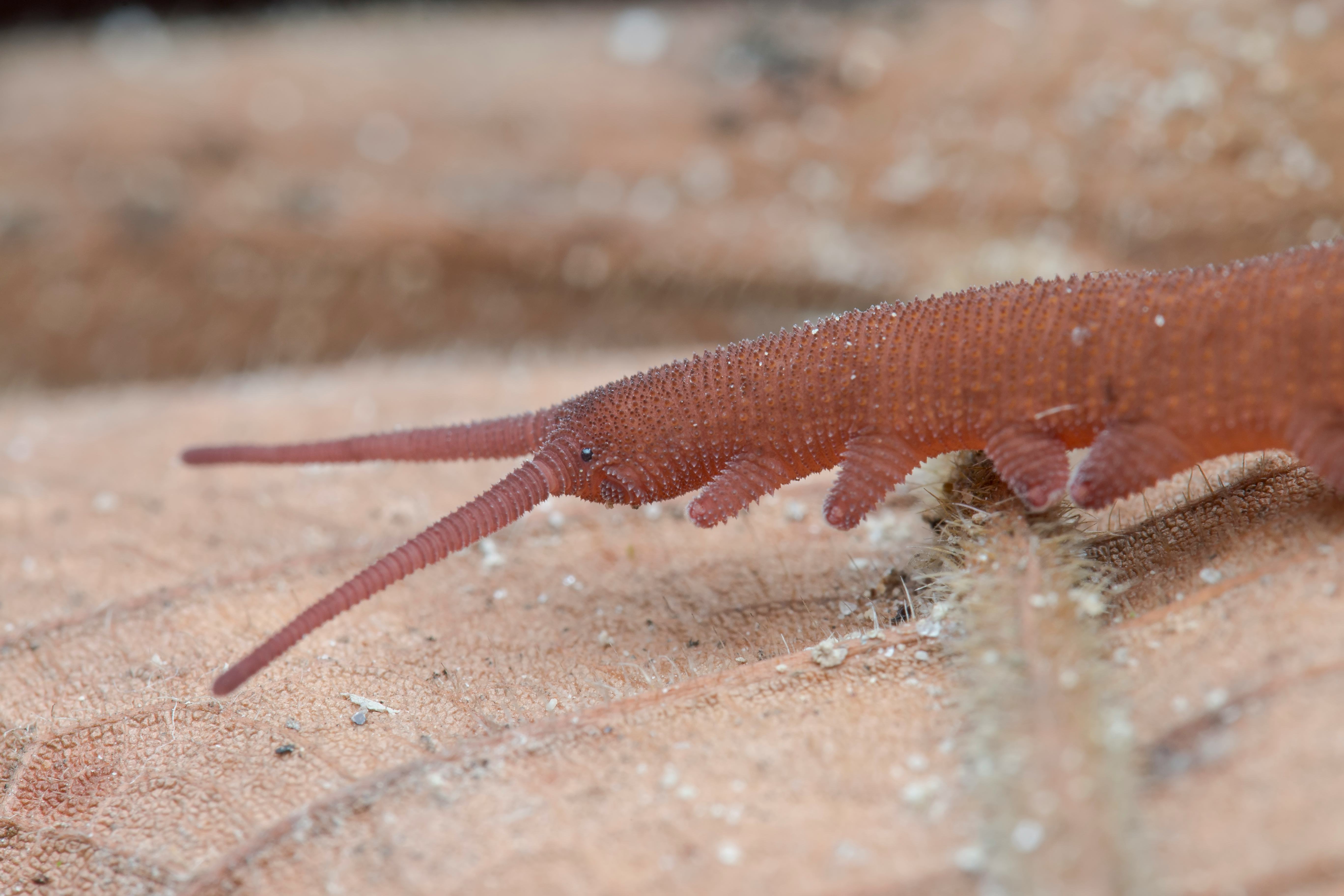 It’s dreadfully slow, but the cover of darkness — and leaf litter — keeps it hidden. It glides along dozens of stumpy legs, but it’s no centipede: It’s a velvet worm, and it’s hunting for its next meal.