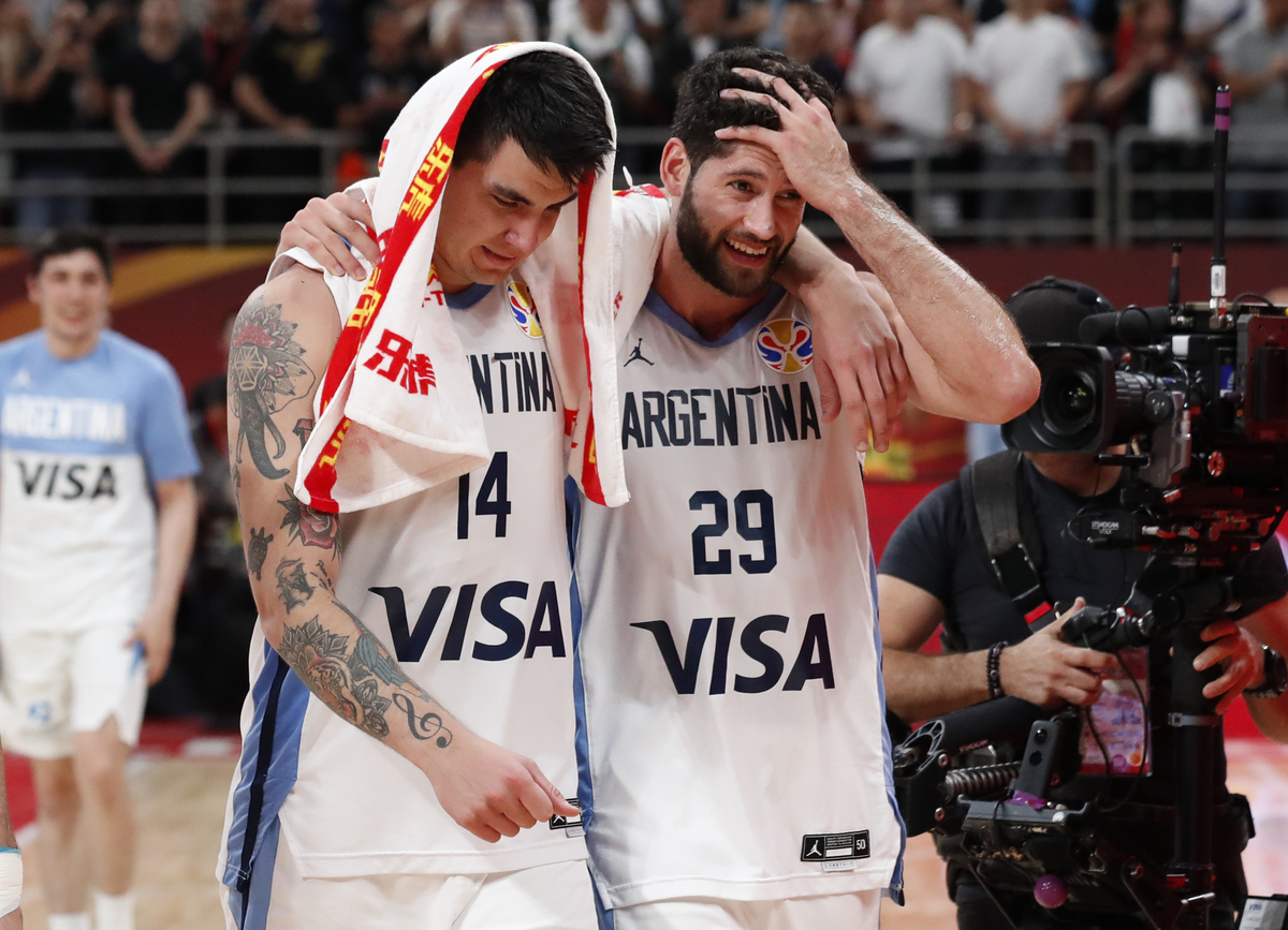 Basketball - FIBA World Cup - Semi Finals - Argentina v France - Wukesong Sport Arena, Beijing, China - September 13, 2019 Argentina's Luis Scola celebrates victory with his family after the match REUTERS/Thomas PeterBasketball - FIBA World Cup - Semi Finals - Argentina v France - Wukesong Sport Arena, Beijing, China - September 13, 2019 France's Nando De Colo in action with Argentina's Tayavek Gallizzi REUTERS/Jason LeeBasketball - FIBA World Cup - Semi Finals - Argentina v France - Wukesong Sport Arena, Beijing, China - September 13, 2019 France's Evan Fournier in action with Argentina's Nicolas Laprovittola and Facundo Campazzo REUTERS/Thomas PeterBasketball - FIBA World Cup - Semi Finals - Argentina v France - Wukesong Sport Arena, Beijing, China - September 13, 2019 Argentina's Nicolas Laprovittola in action with France's Nando De Colo REUTERS/Kim Kyung-HoonBasketball - FIBA World Cup - Semi Finals - Argentina v France - Wukesong Sport Arena, Beijing, China - September 13, 2019 France's Evan Fournier in action with Argentina's Gabriel Deck REUTERS/Thomas PeterBasketball - FIBA World Cup - Semi Finals - Argentina v France - Wukesong Sport Arena, Beijing, China - September 13, 2019 France's Andrew Albicy in action with Argentina's Marcos Delia and Nicolas Laprovittola REUTERS/Thomas PeterBasketball - FIBA World Cup - Semi Finals - Argentina v France - Wukesong Sport Arena, Beijing, China - September 13, 2019 Argentina's Nicolas Laprovittola is kissed by Facundo Campazzo as they celebrate victory after the match REUTERS/Kim Kyung-HoonBasketball - FIBA World Cup - Semi Finals - Argentina v France - Wukesong Sport Arena, Beijing, China - September 13, 2019 Argentina's Gabriel Deck and Patricio Garino celebrate victory after the match REUTERS/Kim Kyung-HoonBasketball - FIBA World Cup - Semi Finals - Argentina v France - Wukesong Sport Arena, Beijing, China - September 13, 2019 Argentina's Gabriel Deck celebrates victory with teammates after the match REUTERS/Jason Lee