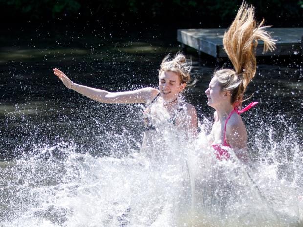The heatwave meant many Britons were able to bask in sun on what is now the hottest early May bank holiday weekend on record since it was introduced in 1978.