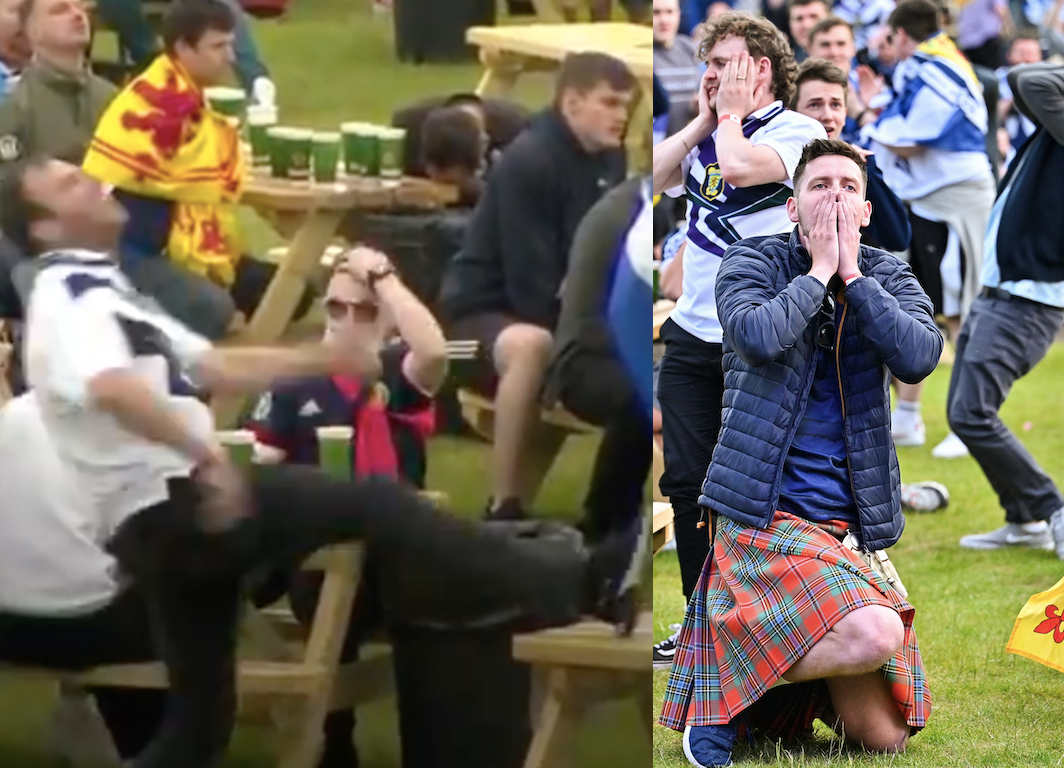Their exit was perhaps summed up by this one fan, who was captured by BBC News cameras after he went to kick a table in anger but completely missed. Fortunately, he looked to have avoided giving himself an injury.