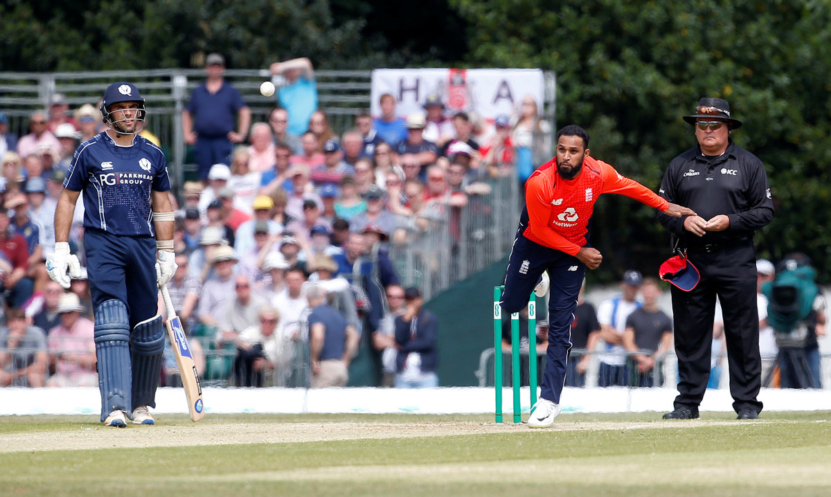 Cricket - Scotland v England - One Day International - Grange Cricket Club, Edinburgh, Britain - June 10, 2018 England's Adil Rashid bowls the ball Action Images via Reuters/Craig Brough