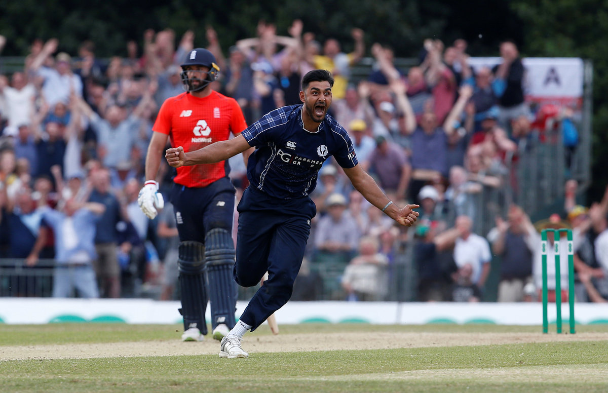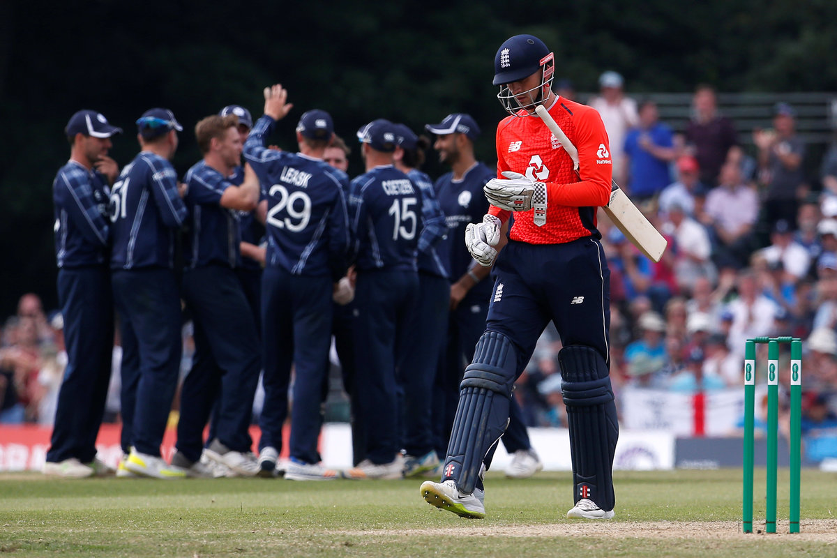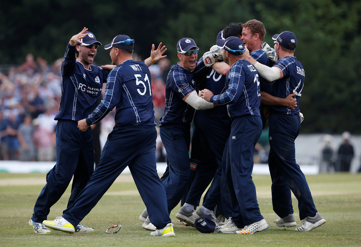 Cricket - Scotland v England - One Day International - Grange Cricket Club, Edinburgh, Britain - June 10, 2018 England's Adil Rashid celebrates with team mates after taking the wicket of Scotland's Kyle Coetzer Action Images via Reuters/Craig BroughCricket - Scotland v England - One Day International - Grange Cricket Club, Edinburgh, Britain - June 10, 2018 Scotland's Calum MacLeod in action Action Images via Reuters/Craig BroughCricket - Scotland v England - One Day International - Grange Cricket Club, Edinburgh, Britain - June 10, 2018 Scotland's Calum MacLeod celebrates reaching a century Action Images via Reuters/Craig BroughCricket - Scotland v England - One Day International - Grange Cricket Club, Edinburgh, Britain - June 10, 2018 England's Jonny Bairstow in action Action Images via Reuters/Craig BroughCricket - Scotland v England - One Day International - Grange Cricket Club, Edinburgh, Britain - June 10, 2018 England's Jonny Bairstow celebrates reaching a century Action Images via Reuters/Craig BroughCricket - Scotland v England - One Day International - Grange Cricket Club, Edinburgh, Britain - June 10, 2018 England's Jonny Bairstow with Jason Roy Action Images via Reuters/Craig BroughCricket - Scotland v England - One Day International - Grange Cricket Club, Edinburgh, Britain - June 10, 2018 Scotland's George Munsey catches the ball to take the wicket of England's Jonny Bairstow Action Images via Reuters/Craig BroughCricket - Scotland v England - One Day International - Grange Cricket Club, Edinburgh, Britain - June 10, 2018 England's Alex Hales looks dejected after being dismissed as Scotland players celebrate Action Images via Reuters/Craig BroughCricket - Scotland v England - One Day International - Grange Cricket Club, Edinburgh, Britain - June 10, 2018 Scotland's Kyle Coetzer celebrates with Mark Watt after catching the ball to dismiss England's Sam Billings Action Images via Reuters/Craig BroughCricket - Scotland v England - One Day International - Grange Cricket Club, Edinburgh, Britain - June 10, 2018 Scotland's Safyaan Sharif celebrates winning the match Action Images via Reuters/Craig BroughCricket - Scotland v England - One Day International - Grange Cricket Club, Edinburgh, Britain - June 10, 2018 England's Liam Plunkett and Mark Wood after the match Action Images via Reuters/Craig BroughCricket - Scotland v England - One Day International - Grange Cricket Club, Edinburgh, Britain - June 10, 2018 Scotland fan invades the pitch after the match Action Images via Reuters/Craig Brough