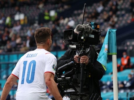 So as the game resumed, with blue shirts piling forward and white shirts pushed back with the crescendo of noise, another attempt from Hendry was blocked, cannoning back towards the defender’s goal. Given the 80 yards between him and the goal, there seemed no immediate danger. What Hendry, his team-mates, those in the stands and us watching did not realise was that Patrik Schick was going to take 50 of those yards out of the equation with one devastating swish of his left foot.