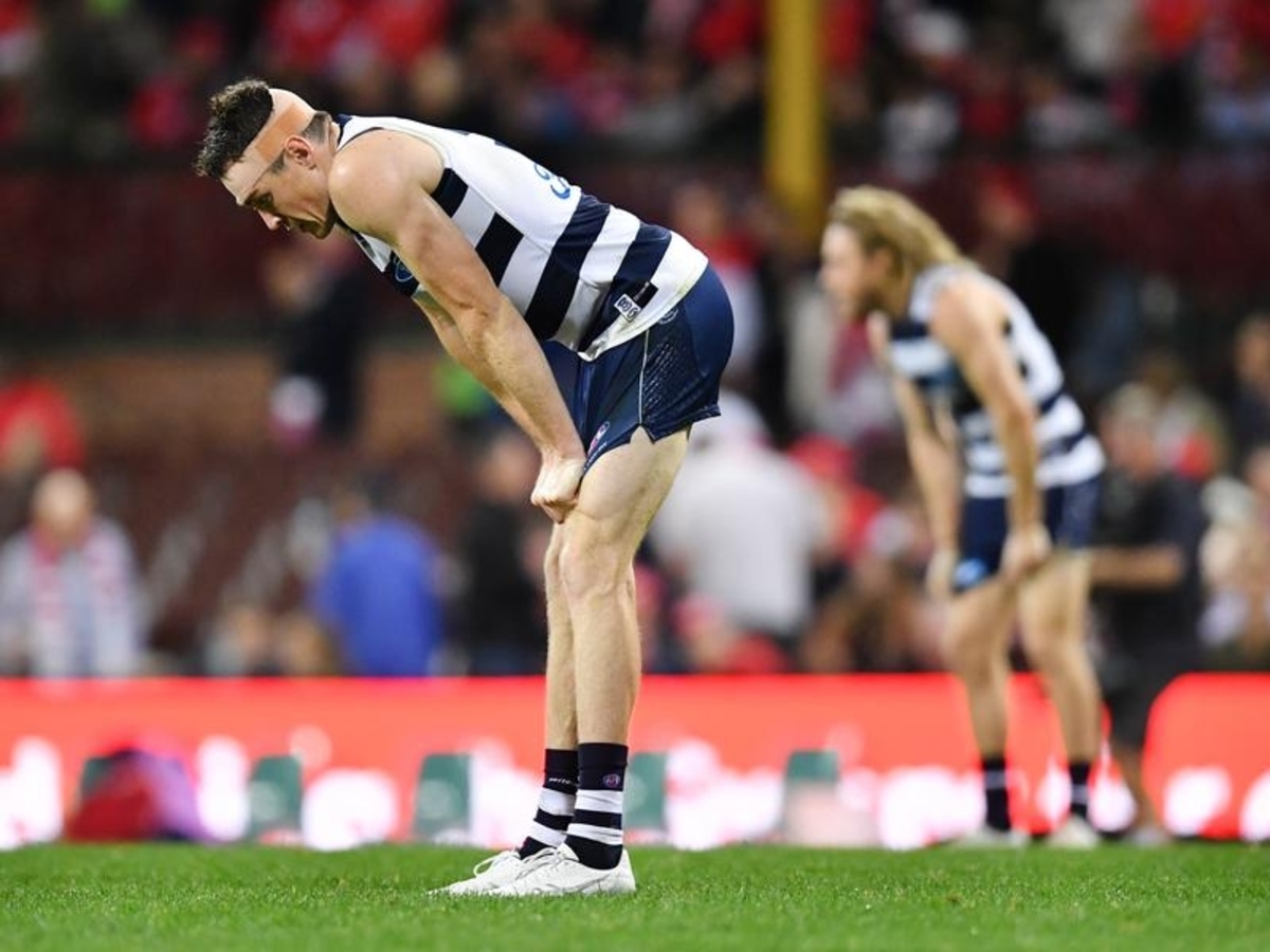 But the whistleblowers called play on, wrongly ruling the Sherrin had not travelled 15 metres in the Cats' forward line, and the Swans held on.