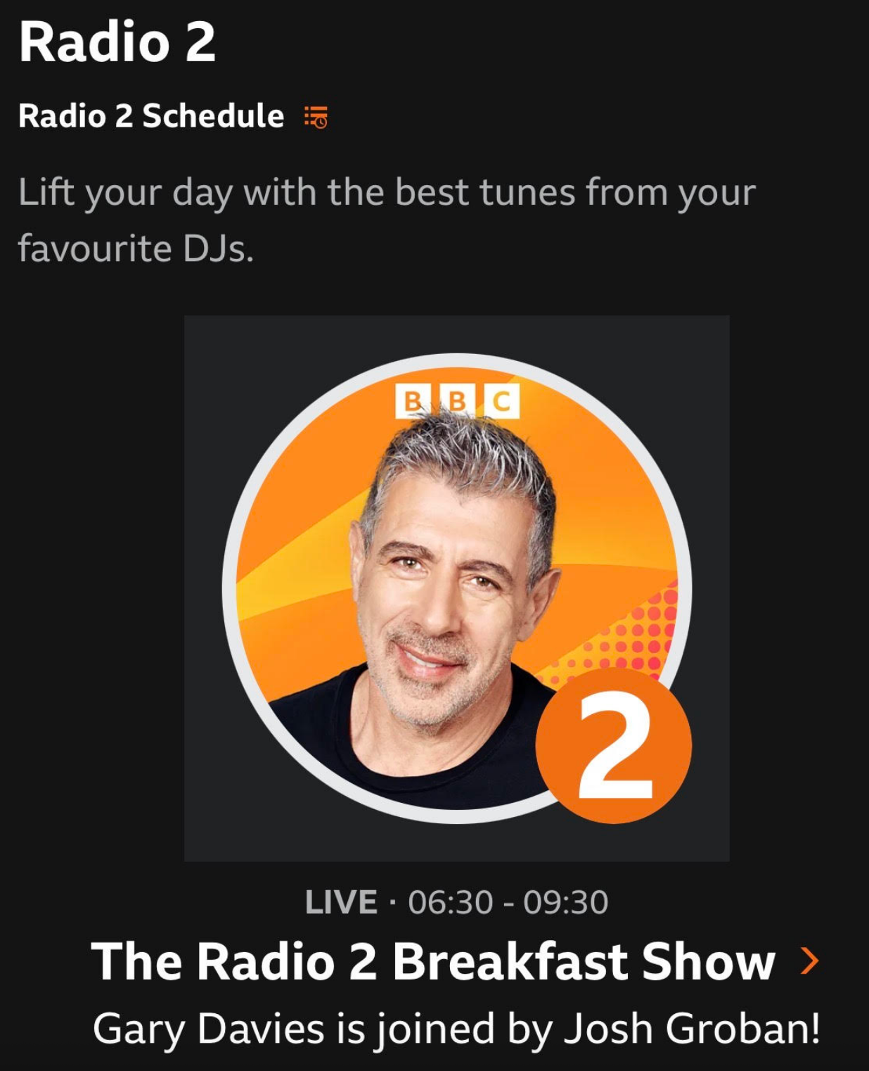 In 2022, he joined Radio 2, replacing Steve Wright in his weekday afternoon slot.
