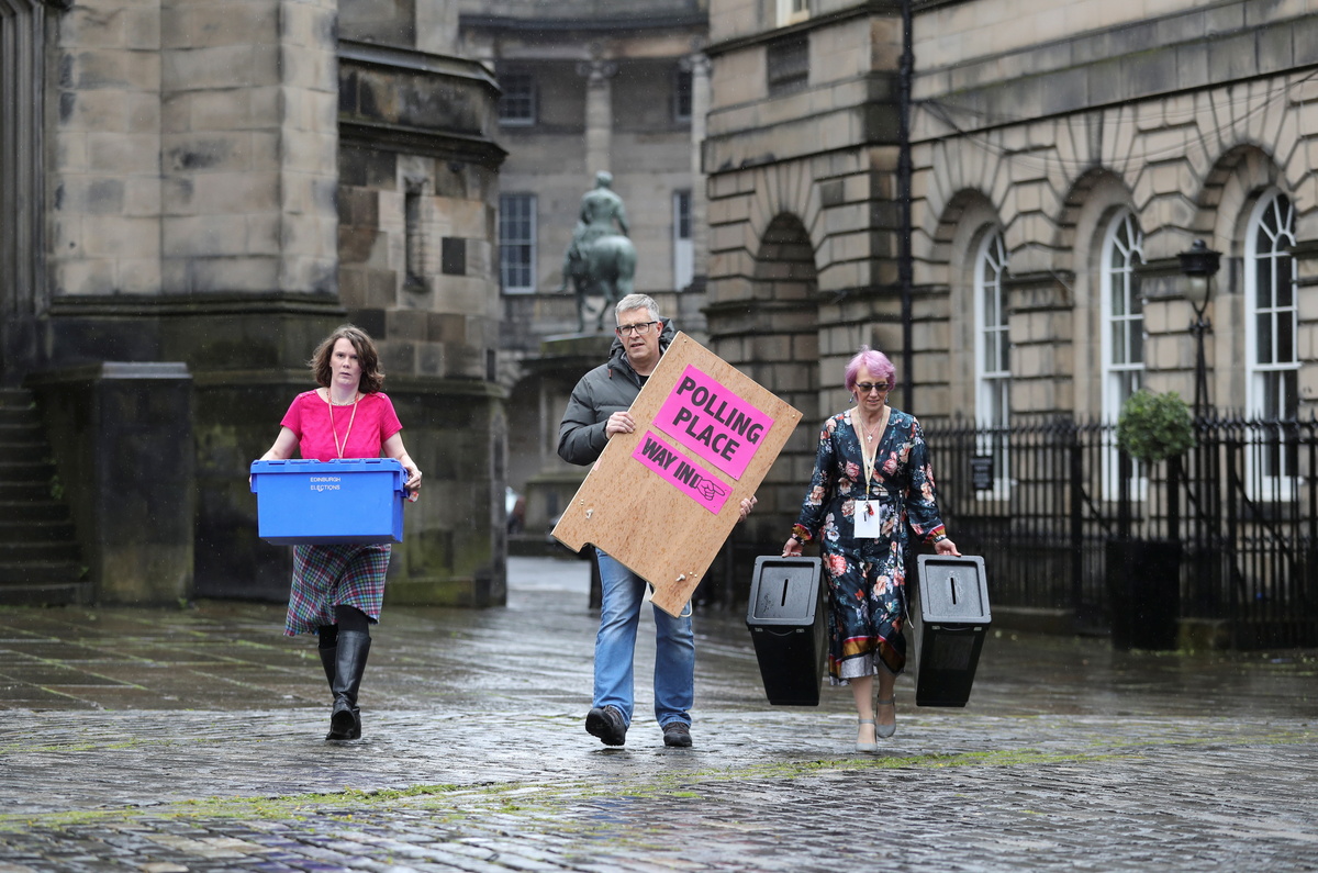 A Savanta ComRes poll indicated the SNP would fall six seats short of winning an outright majority in the 129-seat parliament, though it showed the Greens, which are pro-independence, were set for gains.