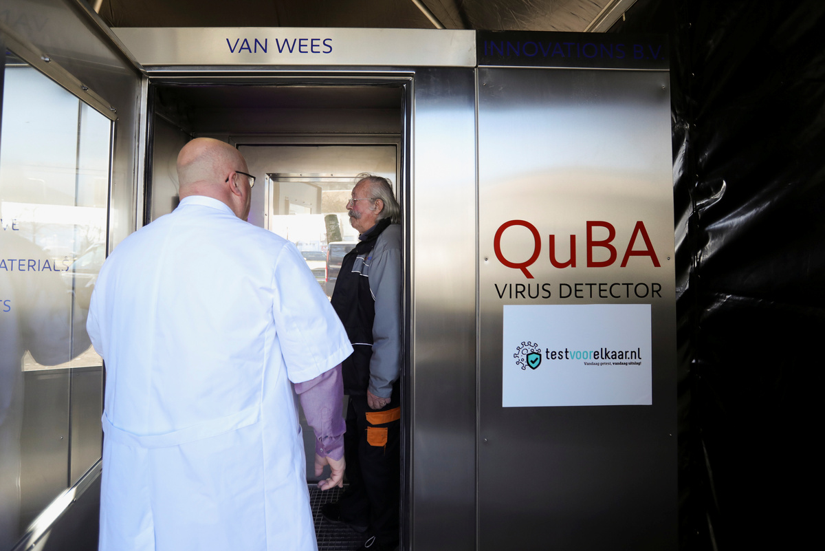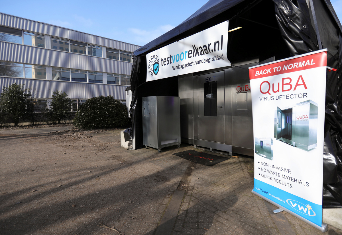Van Wees, a serial entrepreneur, has set up his booth next to a coronavirus testing centre on the outskirts of Amsterdam to try his invention out on people who have just been tested.