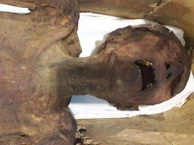 The remains are considered strange because they are not, in fact, properly mummified, despite being buried near the mummies of royalty.