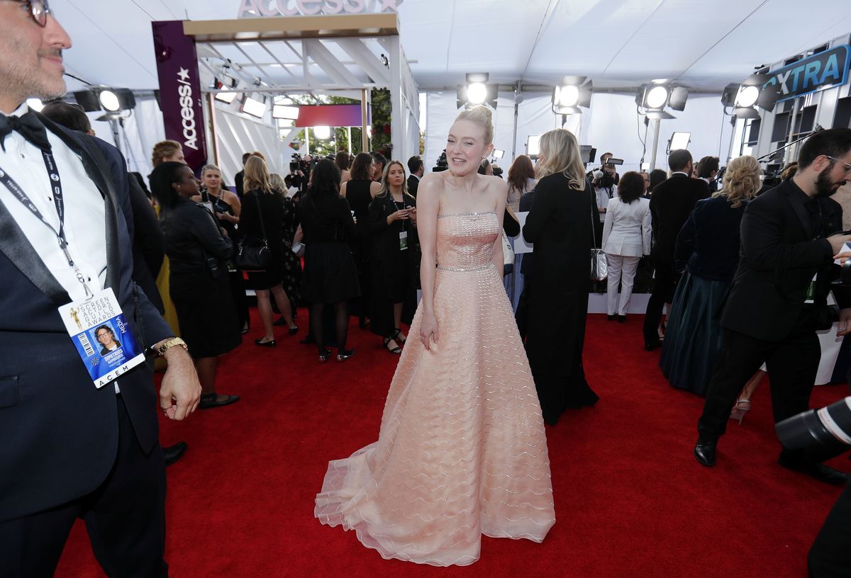 On the red carpet, women swapped the black gowns that marked support for victims of sexual harassment at the Golden Globes two weeks ago for brighter blues, green and metallic hues.