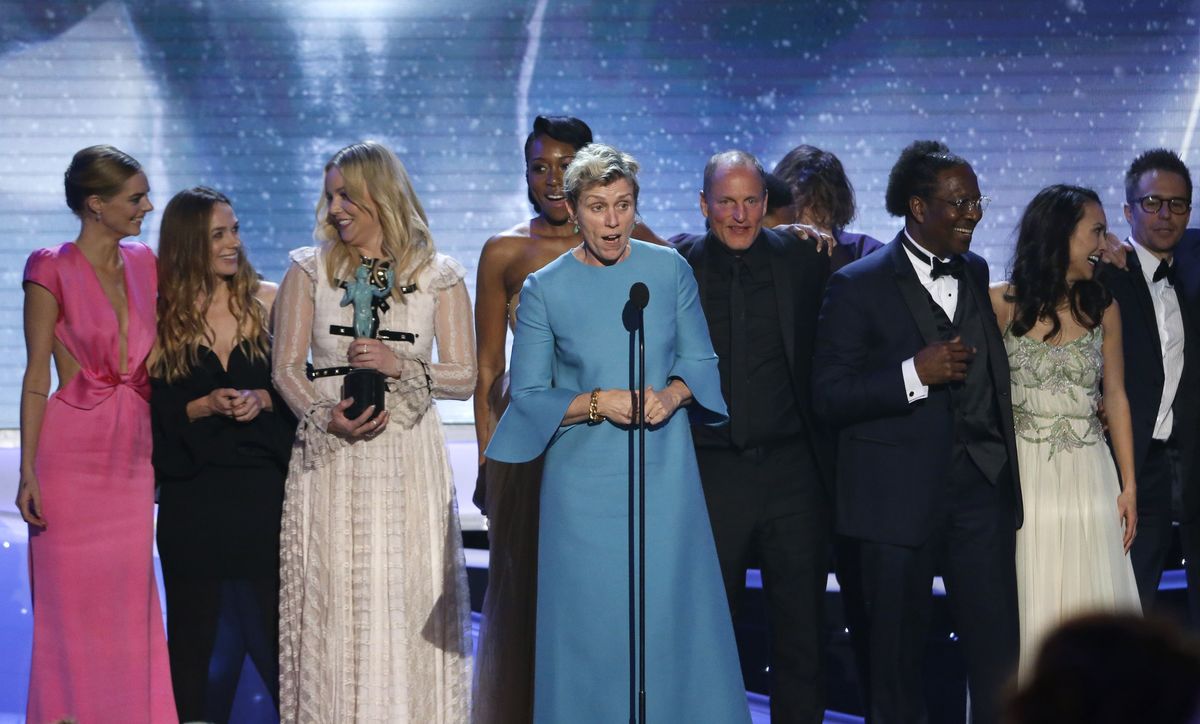 The Fox Searchlight film about a furious woman seeking justice for the murder of her daughter was named best ensemble, the top SAG honor.