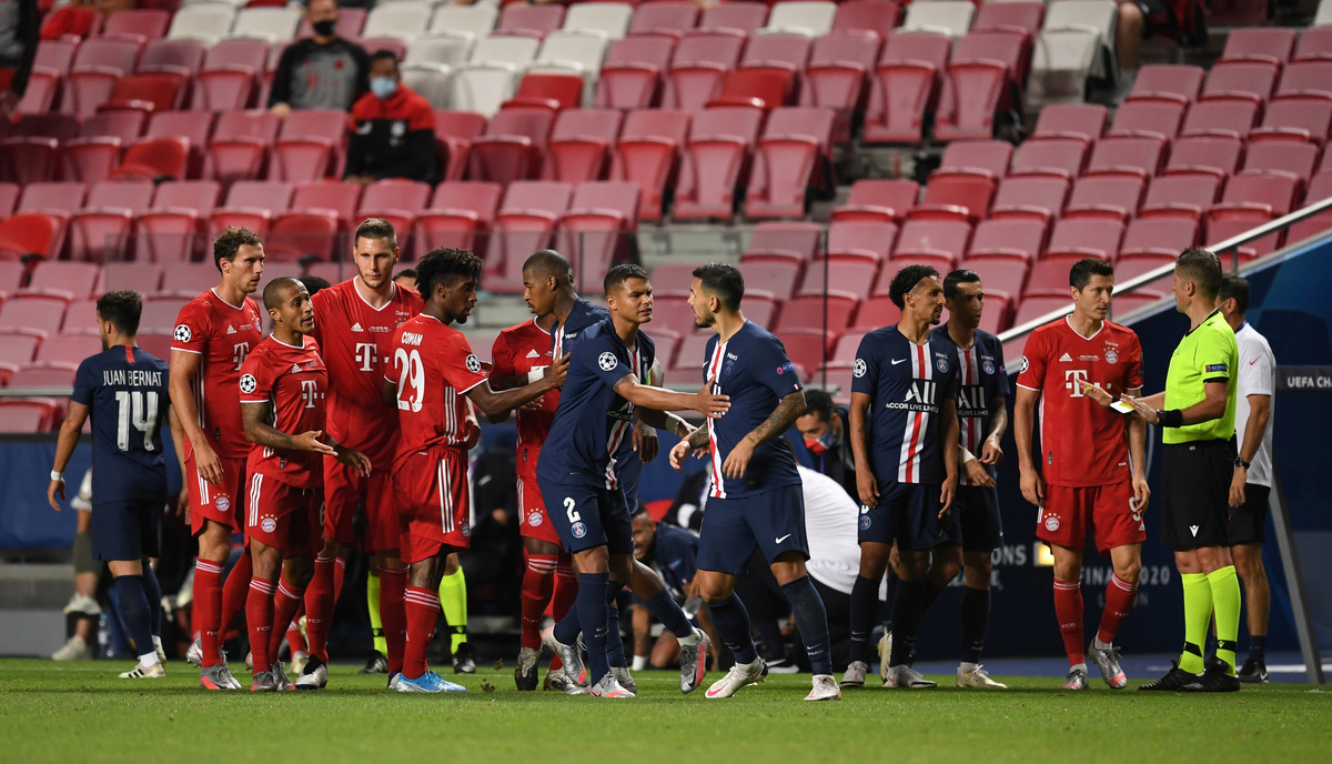 Police in Paris clashed briefly with crowds outside the Paris St Germain soccer stadium as the Champions' League final against Bayern Munich got underway on Sunday, while people were turfed out of some bars for not respecting social distancing rules.