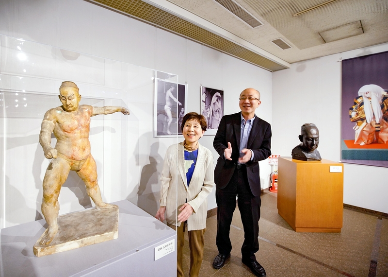 What can be considered as the culmination of his artistic activities is his "Kagamijishi," statues that depict movements by kabuki actor Onoe Kikugoro VI.
