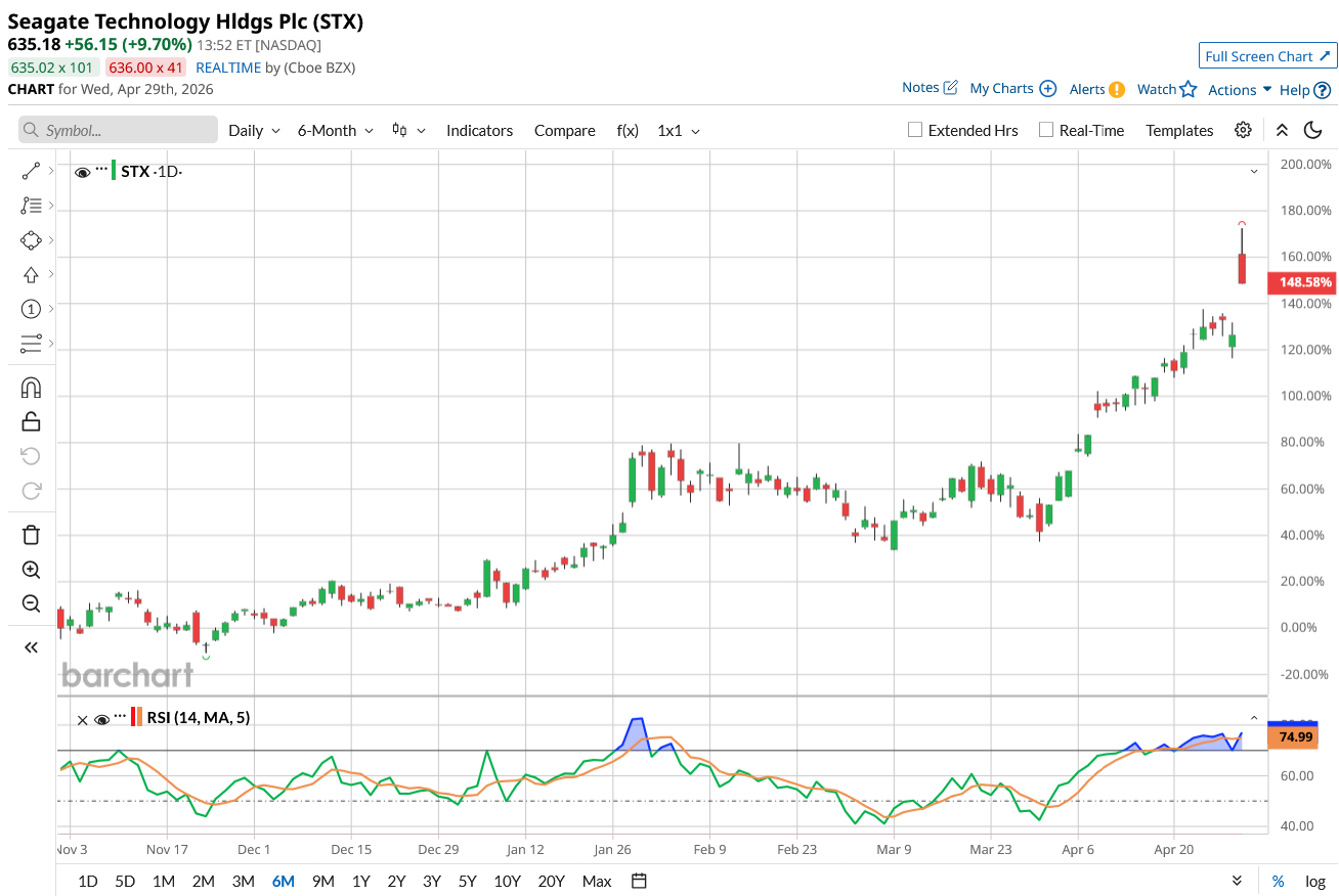 Seagate Technology (STX) delivered strong financial results for the third quarter of fiscal 2026, triggering a sharp positive market reaction. Shares of STX have surged over 10% in today's trading, reflecting investors’ growing confidence in the durability of demand for its high-capacity data storage solutions, driven by rising capital expenditures for artificial intelligence (AI) infrastructure.