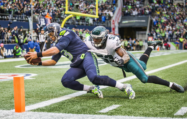 Wilson, whose fourth-quarter heroics this season dominated the NBC storyline of the telecast, then scrambled on a third-and-eight play and appeared as if he might come up short as two Eagles defenders approached.