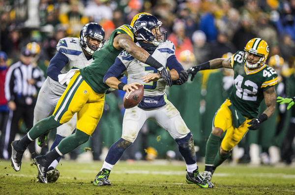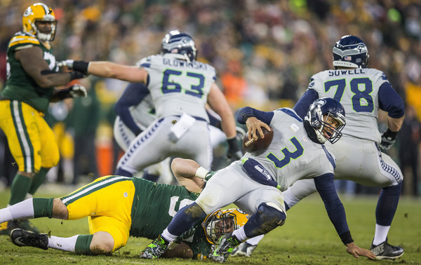 Seattle had only 25 yards on 18 plays until moving 74 yards on the final eight plays of the half as its offensive line was often overwhelmed by Green Bay's defensive front.