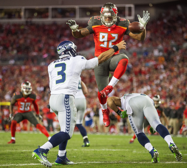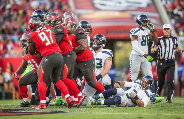 Frank Clark forced a hold in the end zone by Tampa Bay tight end Luke Stocker that resulted in a safety and made the score 14-2. Seattle then moved just enough on the next possession to make it 14-5.