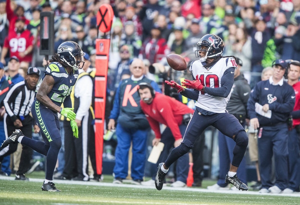 But the Texans again answered, driving 84 yards for another touchdown on a Watson to Fuller pass _ this one of 20 yards and beating Richard Sherman in the process _ to make it 21-14.