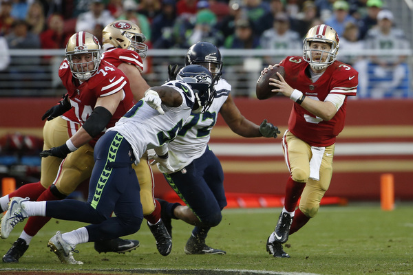 The two third-quarter touchdowns were more than enough room for a Seattle defense that dominated the 49ers throughout _ San Francisco's only touchdown came on the final play of the game on a 10-yard pass from Jimmy Garoppolo to Louis Murphy, a few plays after starting quarterback C.J. Beathard left with an injury.