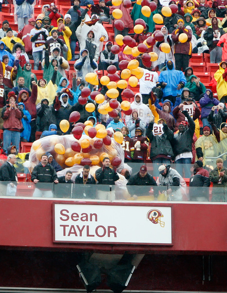 The team honored the memory of a safety who starred for Washington from 2004 to 2007. Taylor died during the 2007 season at age 24 when he was shot by an intruder in his home in Florida.